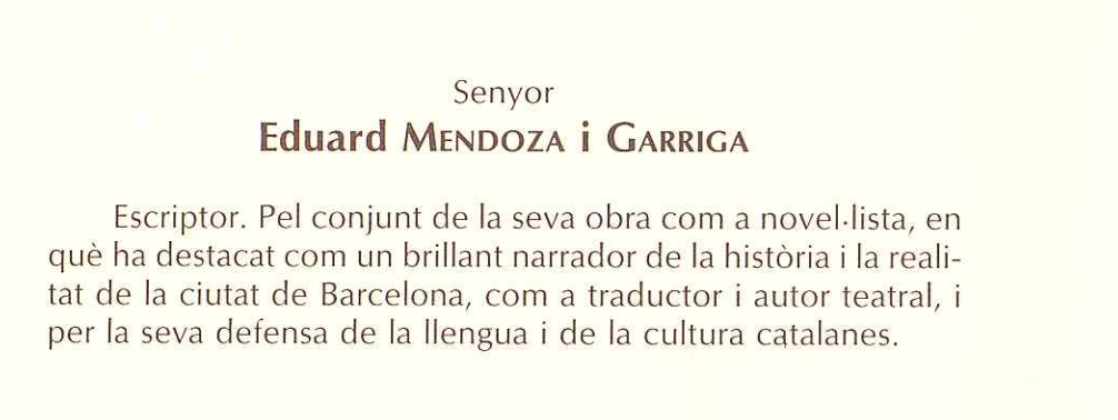 El col·lectiu anònim Segell Fosc ha posat en marxa una campanya per exigir la retirada de la Creu de Sant Jordi a l’escriptor barceloní Eduardo Mendoza. L’endemà que el novel·lista es manifestés públicament a favor de canviar el nom de la diada de Sant Jordi i que provoqués la indignació per diversos representats polítics i culturals del país, els impulsors del Menjòmetre han activat aquest matí una iniciativa a Change.org per exigir que a Mendoza se li retiri de forma “immediata” la màxima distinció que atorga la Generalitat de Catalunya. En vull hores la campanya ja ha recollit més de 600 signatures de les 50.000 que necessiten. El text que Segell Fosc ha compartit a la plataforma aquesta petició perquè consideren que la retirada de la distinció servirà per “reafirmar els valors que volem defensar com a comunitat i assegurar-nos que la nostra cultura sigui representada només per aquells que veritablement la respecten i l’enalteixen”.