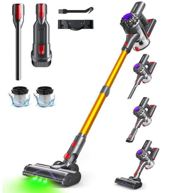 La innovación también juega un papel importante en este modelo. La aspiradora incorpora una luz verde que ilumina el polvo invisible en zonas oscuras. Esto facilita detectar suciedad en rincones, bajo muebles o entre alfombras, donde muchas veces la vista falla.