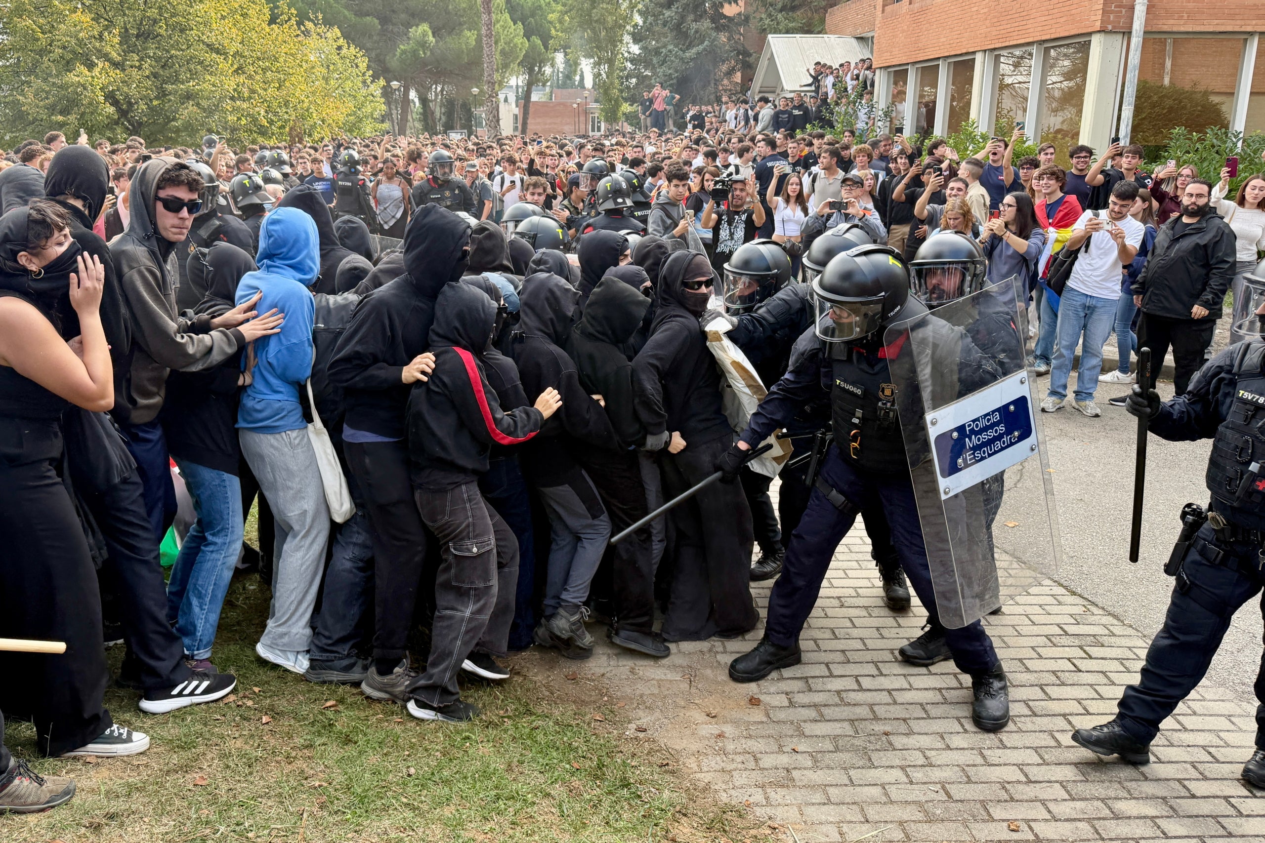Disturbios en la Universitat Autònoma de Barcelona (UAB) por el polémico acto del agitador de extrema derecha Vito Quiles, que había anunciado la celebración de una conferencia a pesar de no tener permiso de la universidad. Cientos de personas se habían concentrado desde primera hora en la plaza Cívica para evitar la llegada de Quiles y sus simpatizantes. Finalmente, el polémico agitador fue escoltado por su equipo de seguridad.