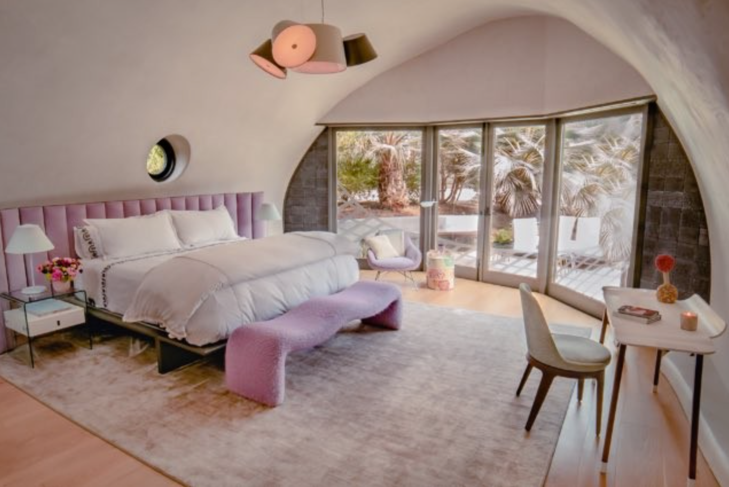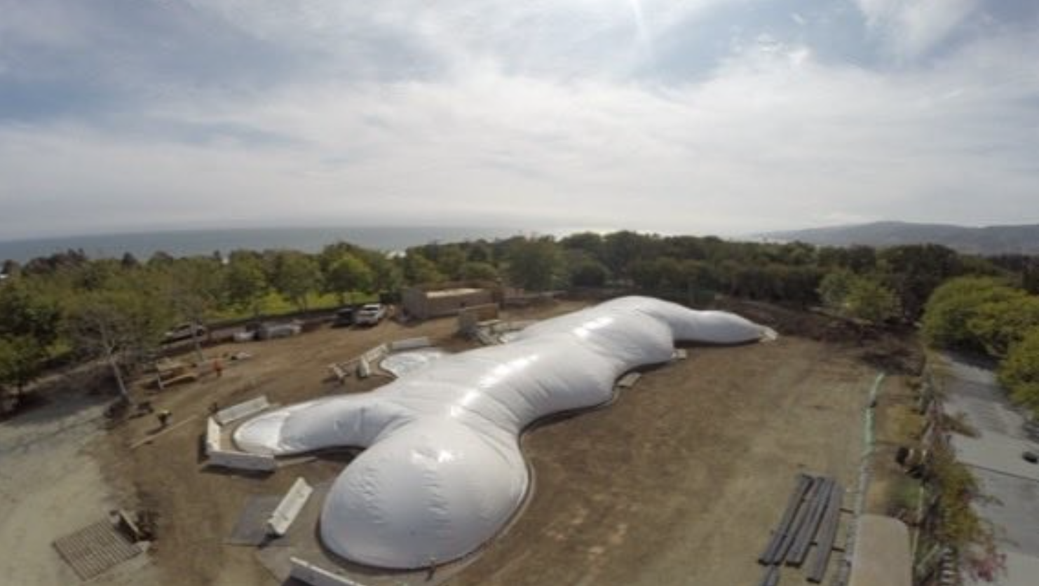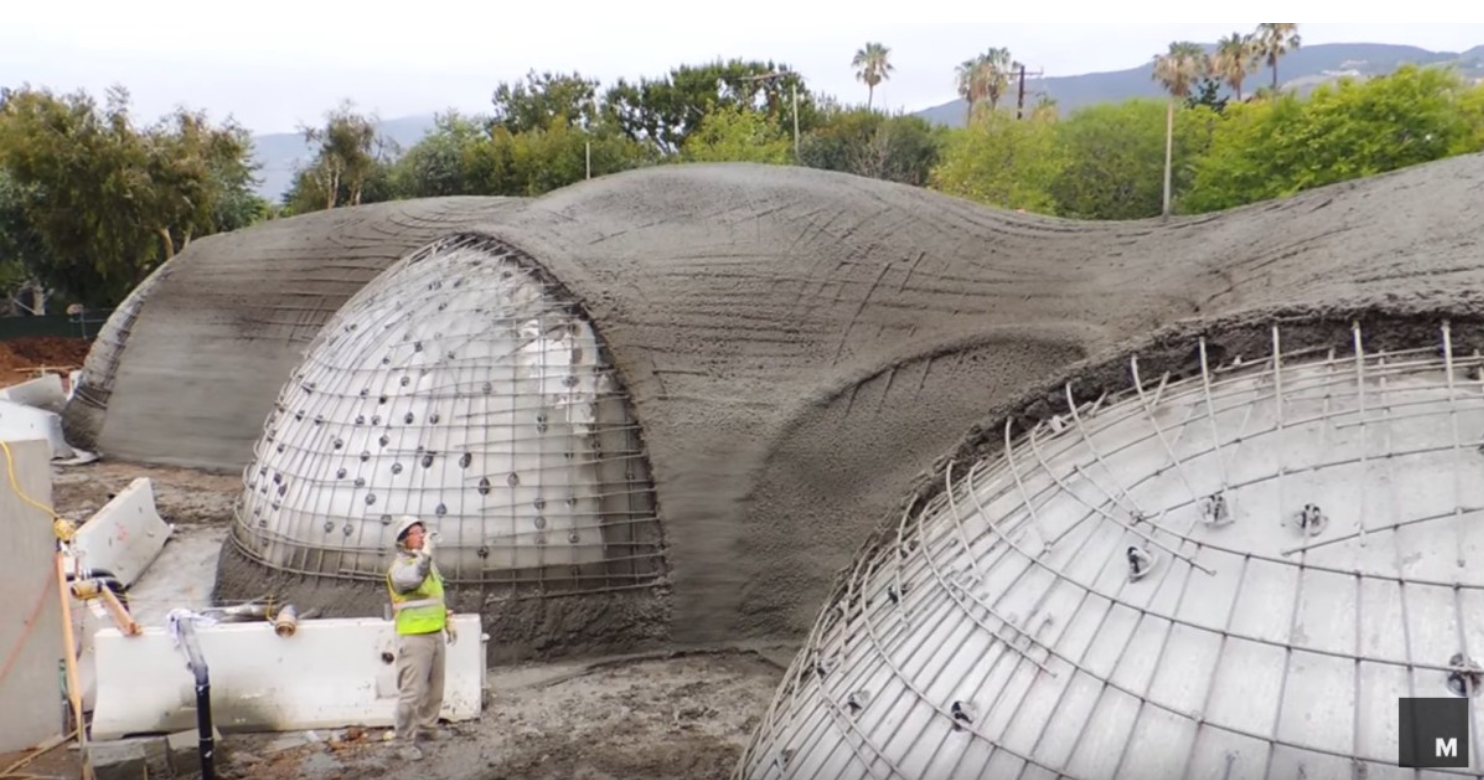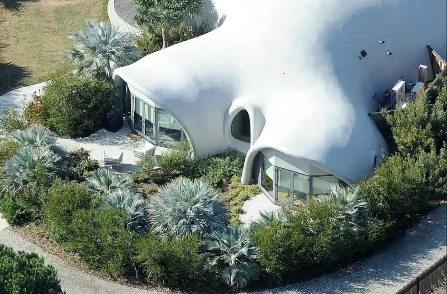 La obra de la casa se hizo de una manera muy singular: hinchándola. El arquitecto hinchó la estructura hasta llegar a la forma deseada y entonces colocó una malla metálica encima de la estructura para reforzarla. Después le puso hormigón elaborado con ceniza -un subproducto del carbón pulverizado- y residuos industriales con poco carbono. Los dos materiales son sostenibles y ecológicos. Un golpe seco el hormigón, el arquitecto retiró la membrana de neopreno hinchable y empezó el diseño de la mansión, pensado para aprovechar al máximo la luz y la ventilación de la zona para evitar consumir mucha energía.