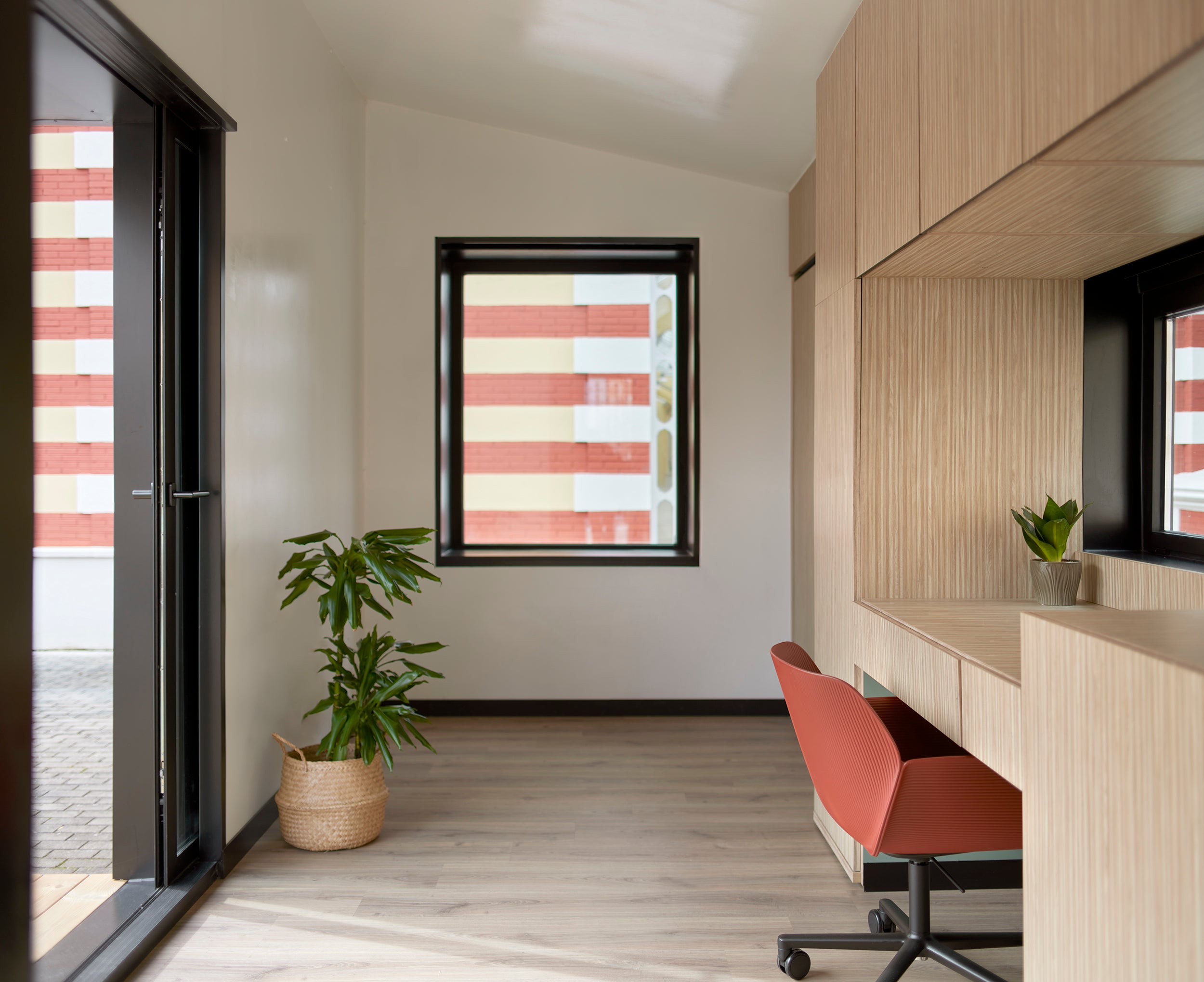 Estas viviendas, de pequeñas dimensiones, incluyen una capa de sensores y «control domótico» para monitorizar las condiciones óptimas del entorno a través del control de la temperatura, humedad y calidad del aire y la confortabilidad del espacio con escenas de iluminación y control climático: A través del sistema Saluz de Normagrup Technology [que trabajan conjuntamente con la empresa asturiana] se puede fomentar el estímulo melanótico». Es decir, el efecto que tiene la radiación solar en los diferentes momentos del día sobre la salud de las personas. Para adaptarse a las necesidades de cada momento, se puede «ajustar la iluminación artificial de los espacios al ciclo de la iluminación natural, controlando tanto la intensidad como la temperatura de color». Desde la compañía aseguran que es un buen método para «garantizar el descanso» de los usuarios.