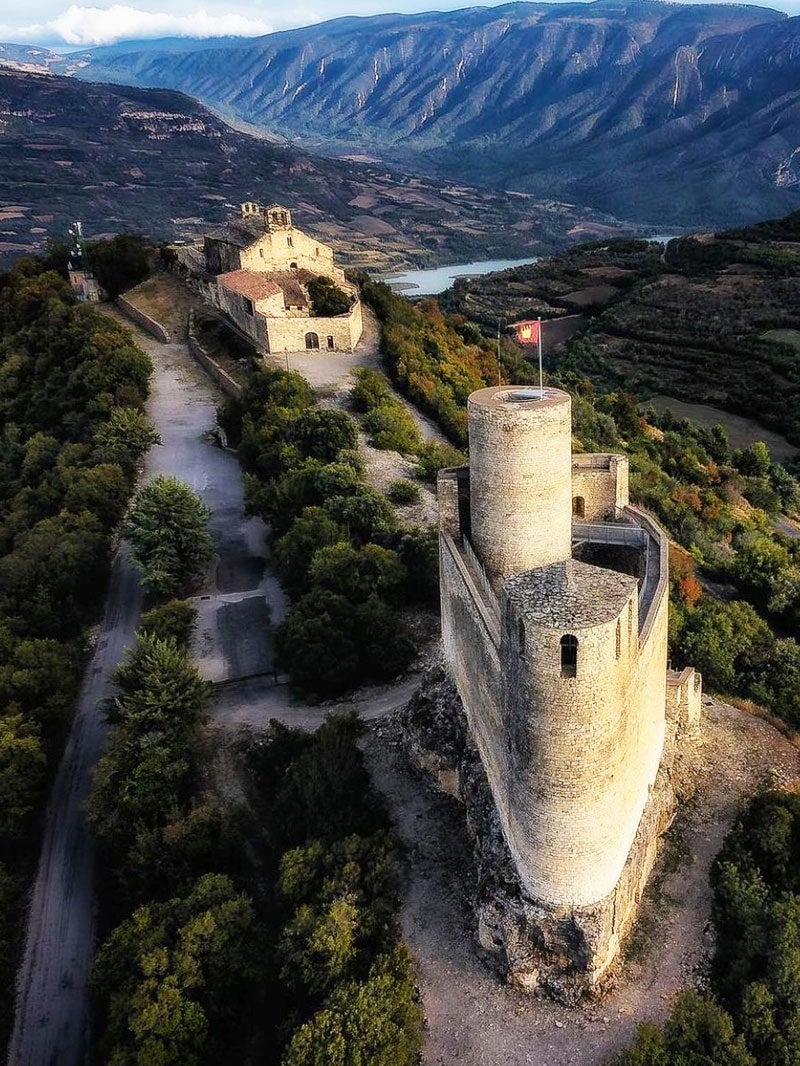 La Serra del Montsec, que separa la Conca de Tremp del Pirineu, és l’escenari d’aquest paisatge antic. Aquí, dos edificis separats per només cent metres semblen conversar entre ells: el Castell de Mur i el monestir de Santa Maria de Mur. Dos testimonis de pedra que han vist passar comtes, guerres, fronteres i, finalment, la pràctica desaparició del poble que els envoltava.