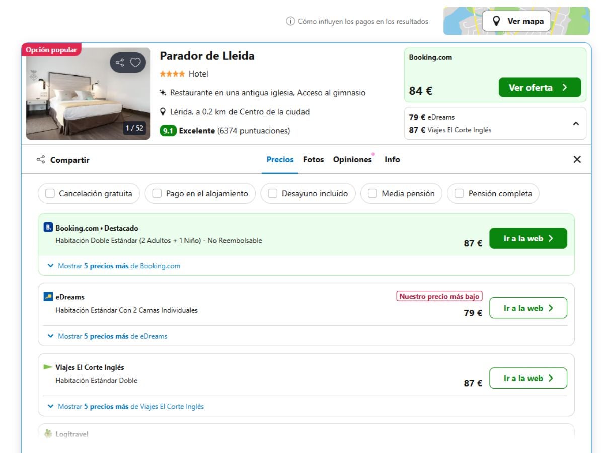 Entra a Trivago, elige los días y busca la oferta específica.