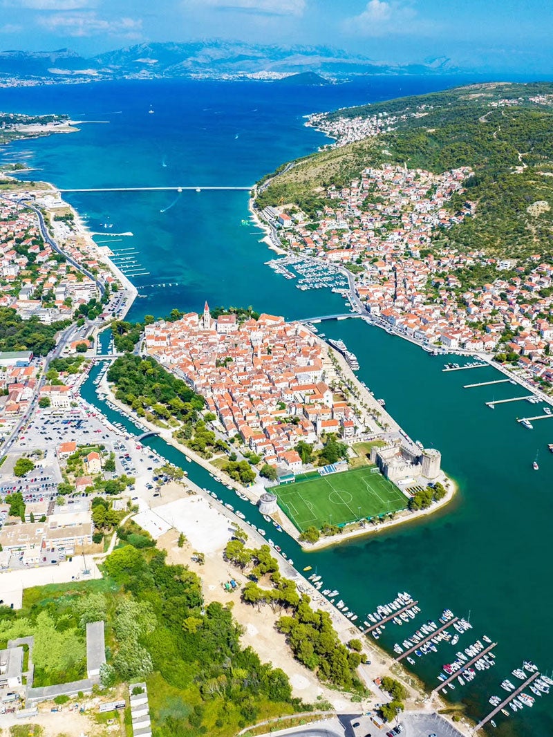 Trogir es un escenario compacto hecho para perderse. Su catedral y los callejones de piedra revelan detalles góticos y renacentistas que aparecen en cada giro. Al atardecer, el puerto cobra vida.