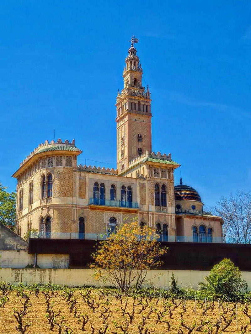 Esta torre fue construida a inicios del siglo XX, en un momento en que el eclecticismo arquitectónico permitía jugar con estilos diversos. Inspirados por los viajes y por la voluntad de situar al pueblo en el mapa, los promotores de la obra decidieron reflejarse en el estilo mudéjar. El resultado es un campanario imponente, que sobresale entre tejados y viñedos y que provoca la misma reacción en todos: sorpresa, una sonrisa y una fotografía inevitable.