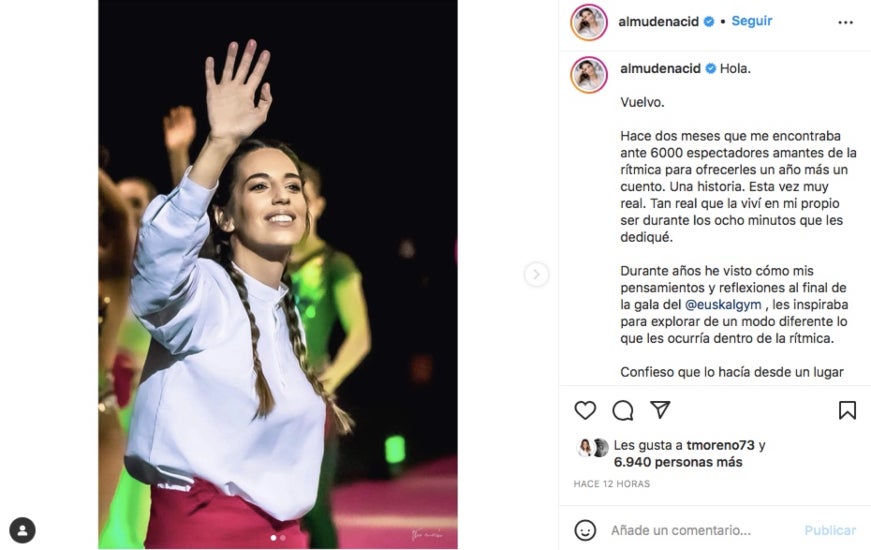 El presentador Christian Gálvez no ha fet cap declaració des que es filtrés la seva separació. Pocs no s’esperaven que trenqués amb Almudena Cid, tenint en compte com d’enamorats s’havien mostrat sempre durant aquests 15 anys de relació. No obstant això, han tallat i ara coneixem més detalls gràcies al post que ha compartit l’exgimnasta en el seu perfil d’Instagram. Més sincera que mai, reconeix estar patint molt: “Fa dos mesos em trobava davant de 600 espectadors amants de la rítmica per oferir-los un conte, una història. Aquesta vegada, molt real… Tan real que la vaig viure en les meves carns durant aquells vuit minuts. En aquesta última gala parlava del meu propi monstre, de la meva pròpia realitat. Mai no vaig pensar que el procés que els vaig oferir aquella nit per enfrontar-se a les seves pors acabés sent el procés que jo travessava en aquell instant. Ara em resulta fins i tot màgic”.