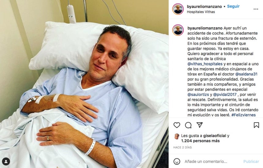 Aurelio Manzano ha estat un dels periodistes del cor amb més recorregut a la televisió espanyola. Durant una època, va encadenar un munt de discussions i escenes cridaneres a Telecinco. Avui torna a ser notícia, però, per un tema completament diferent. El reporter ha patit un accident de trànsit i ha hagut de ser ingressat a l’hospital, el que ha confessat en un post d’Instagram al que ha afegit una fotografia que el mostra al llit de l’habitació del centre. En el xoc va fracturar-se l’estern, el que podria haver tingut conseqüències fatals. Els metges van poder ajudar-lo en una operació de tòrax: “Ahir vaig patir un accident de cotxe i, afortunadament, només ha estat una fractura d’estern. Ja sóc a casa i vull agrair a tot el personal sanitari de la clínica i en especial a un dels millors cirurgians de tòrax de tota Espanya per la seva gran professionalitat”.