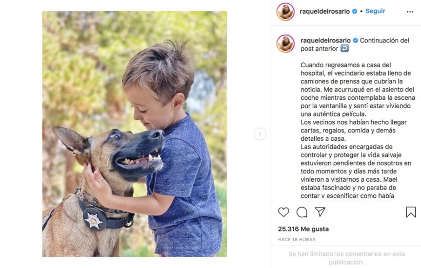 Raquel del Rosario és coneguda mediàtica per haver estat la vocalista del grup El sueño de Morfeo i per sortir durant un temps amb el pilot de Fórmula 1 Fernando Alonso. Ha passat una dècada des que deixés aquesta vida enrere i es traslladés a Califòrnia amb el director de fotografia Pedro Castro. Mare de dos fills, la cantant es manté en un segon pla i pràcticament no comparteix res de la seva vida privada. Aquest diumenge, però, ha deixat l’hermetisme de banda per compartir una història que ha deixat els seus seguidors sense paraules. Un dels nens va patir un accident el 26 d’agost que podria haver estat fatal, ja que va ser atacat per un puma.