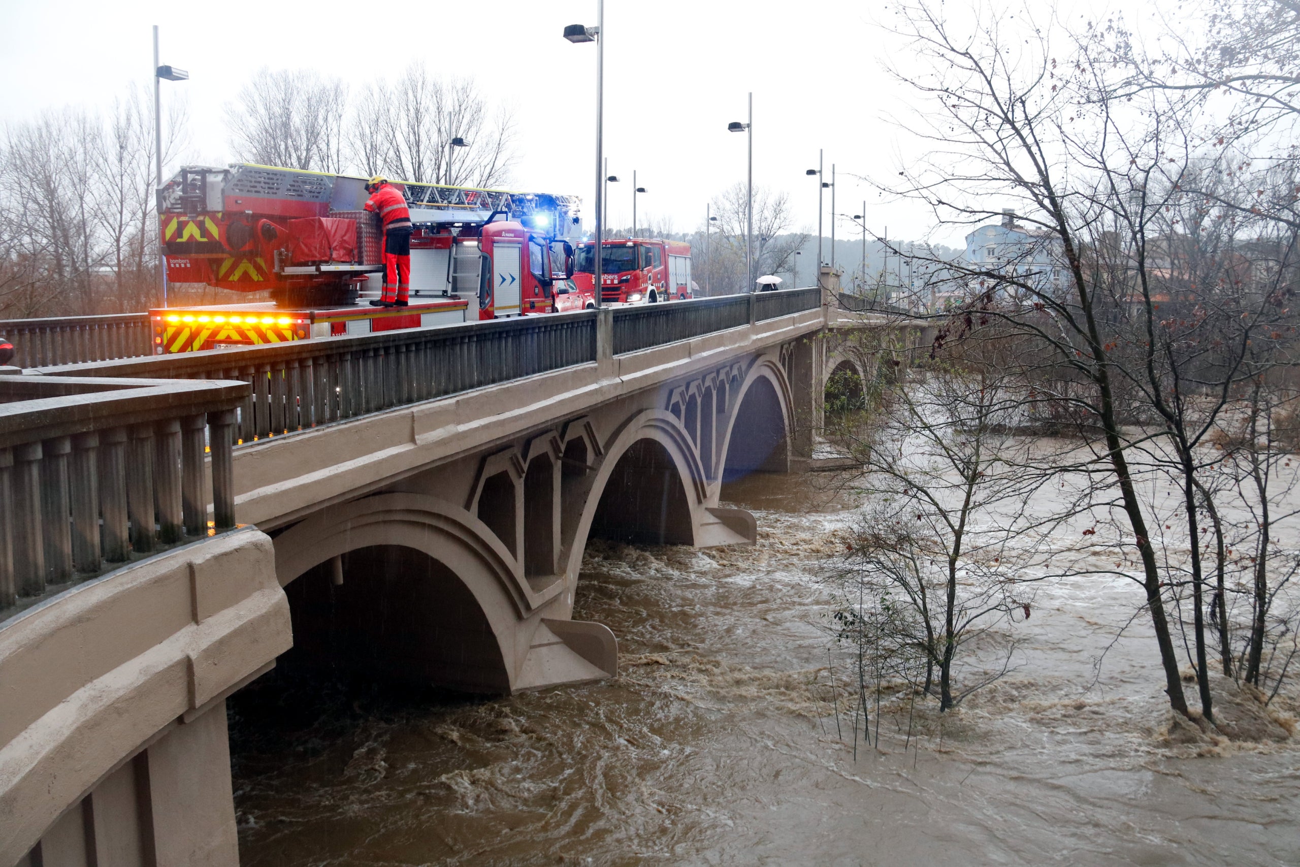 També van molt plens la Tordera a Fogars de la Selva (Selva), amb 230 m3/s, i el Manol a Santa Llogaia d’Àlguema (Alt Empordà, amb 75 m3/s. El Brugent a Amer (Selva) s’apropa als 60 m3/s, la riera de Gotarra a Campllong (Gironès) es troba en 126 m3/s i l’Onyar al pas per Riudellots de la Selva (Selva) en 126 m3/s. Es preveu que també superin el llindar de perill durant el matí el riu Ter a l’altura dels Colomers i Torroella de Montgrí (Baix Empordà).
