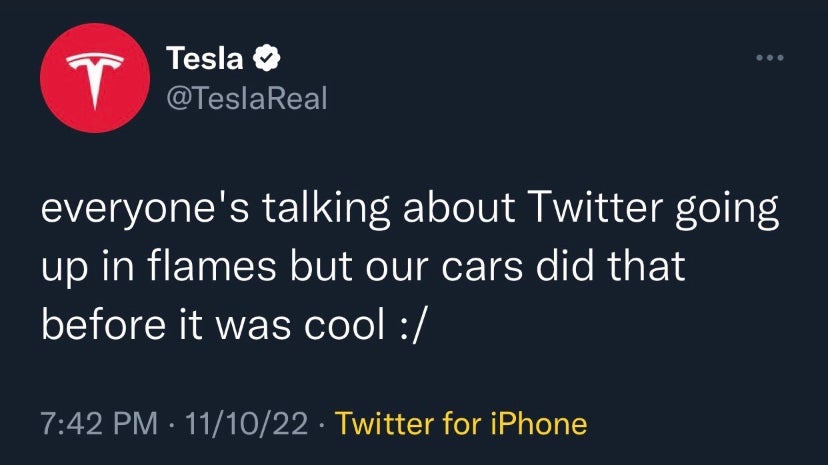 Ara ja suspesos, s’han vist comptes falsos amb blue check de George W. Bush o Tony Blair celebrant la guerra de l’Iraq, entre altres exemples cridaners. Especialment curiós és el compte fals verificat de Tesla replicant els titulars dels atemptats de l’11-S o bromejant sobre la caiguda del valor de mercat de l’automobilística de Musk.