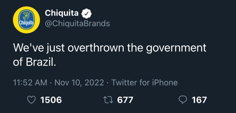 Val a dir, en favor de la comissió, que l’onada no ha trigat ni 24 hores a arribar. Durant les primeres hores era relativament inofensiva: un usuari va crear un compte verificat fent-se passar per la filial nord-americana de Nintendo i va piular imatges de Mario fumant marihuana o insultant els seguidors. Més endavant, però, un compte fals de la farmacèutica Eli Lilly -el principal proveïdor estatunidenc de medicaments contra la diabetis- va piular “En endavant, tota la insulina serà gratis”, provocant una crisi de PR i un desmentiment immediat per part de l’empresa. De fet, en les 12 hores posteriors a la piulada, el valor per acciò de la firma va caure uns 18 dòlars, provocant unes pèrdues globals milionàries.