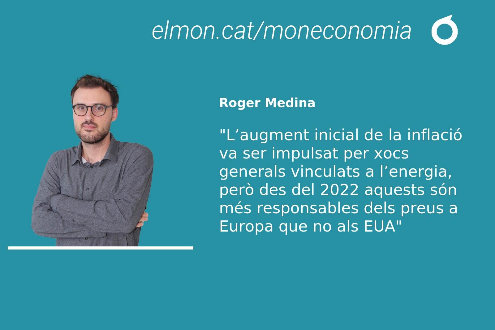 Les estimacions mostren com, en el cas d’Europa, la taxa de variació dels preus del 10,6% pel mes d’octubre del 2022, que va suposar un augment de 9,7 punts respecte a la del gener de l’any anterior, es pot descompondre en 4,8 punts atribuïbles als preus de l’energia i 4,2 punts de la translació a la inflació subjacent, i per tant de caràcter més estructural. Uns mesos més tard, l’efecte del xoc energètic s’havia reduït considerablement, i l’augment dels preus ja responia a canvis no transitoris en l’estructura de costos. En el cas dels Estats Units els resultats són força diferents. Així, dels 7,5 punts d’augment d’inflació respecte inicis del 2021, només 2,8 punts responen a una contribució directa dels preus de l’energia i sols 0,6 punts a la translació de la inflació subjacent. Hi ha 2,3 punts addicionals que responen a xocs en altres indústries. Actualment, gairebé tot el diferencial en preus respecte als nivells previs a l’escalada respon a la situació de rigidesa i sobreescalfament del mercat laboral americà, entesa com la relació entre vacants i desocupats. Això posa de manifest la diferent naturalesa de les inflacions d’Europa i els Estats Units en els darrers dos anys. D’aquesta manera, l’augment inicial de la inflació a banda i banda de l’Atlàntic va ser impulsat per xocs generals vinculats a l’energia, però des de mitjans de l’any 2022 aquests són molt més responsables dels elevats preus a Europa que no pas als Estats Units.