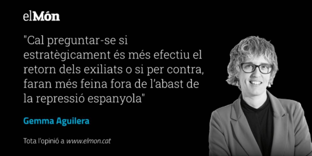 Però cal preguntar-se si estratègicament és més efectiu el retorn dels exiliats o, si per contra, faran més feina fora de l’abast de la repressió espanyola. Una reflexió que, naturalment, queda condicionada per la duresa personal que implica estar fora del país. En cas que sigui més efectiu tornar a Catalunya, el retorn per a què serviria, en una Catalunya autonòmica on l’independentisme està confrontat i sense cap full de ruta precís i creïble?
