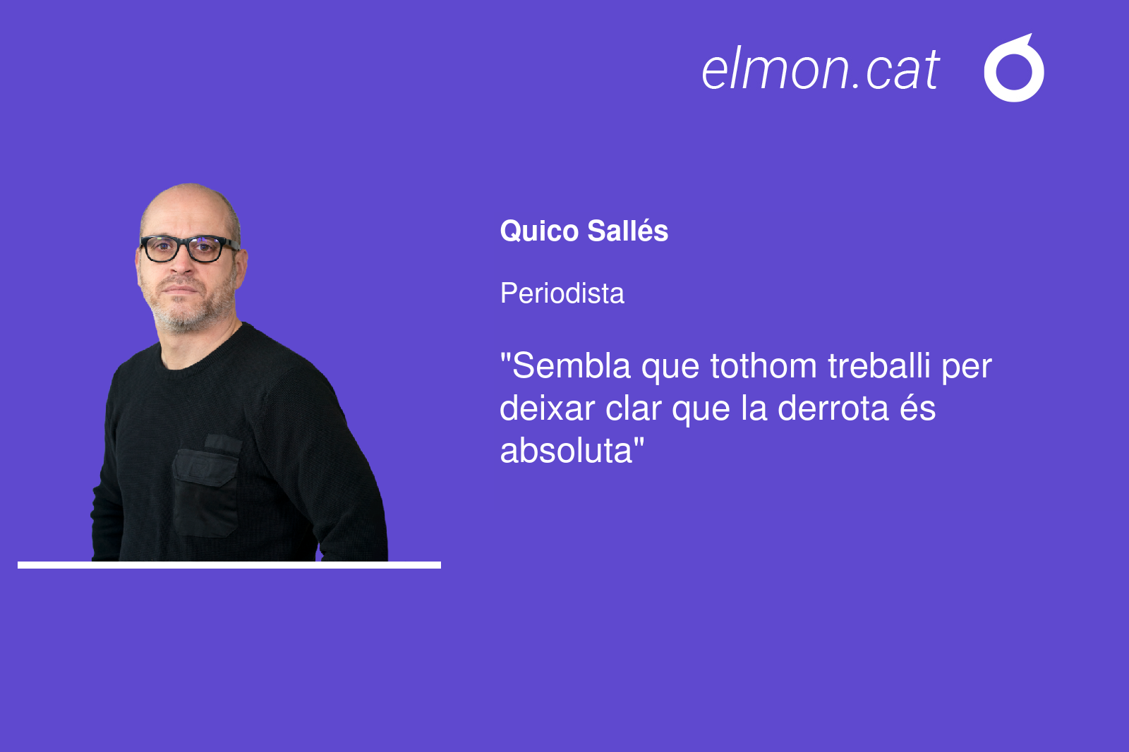 Mortadelo, no és una derrota, és simplement acceptar la realitat. Els vividors del procés - pseudo-periodistes com tu i polítics morts de gana- vàreu enganyar als dèbils mentals, fruït de la crisi del 2008. Sí, se'n diu populisme, i la terregada segueix slogans bàsics com: "ho tenim a tocar", "en 18 messos serem república", "Europa ens acceptarà" o "Israels ens finançarà". Tot això està molt estudiat i ja es va posar en pràctica cap als anys 30 del segle XX, et sona Mortadelo? Doc.