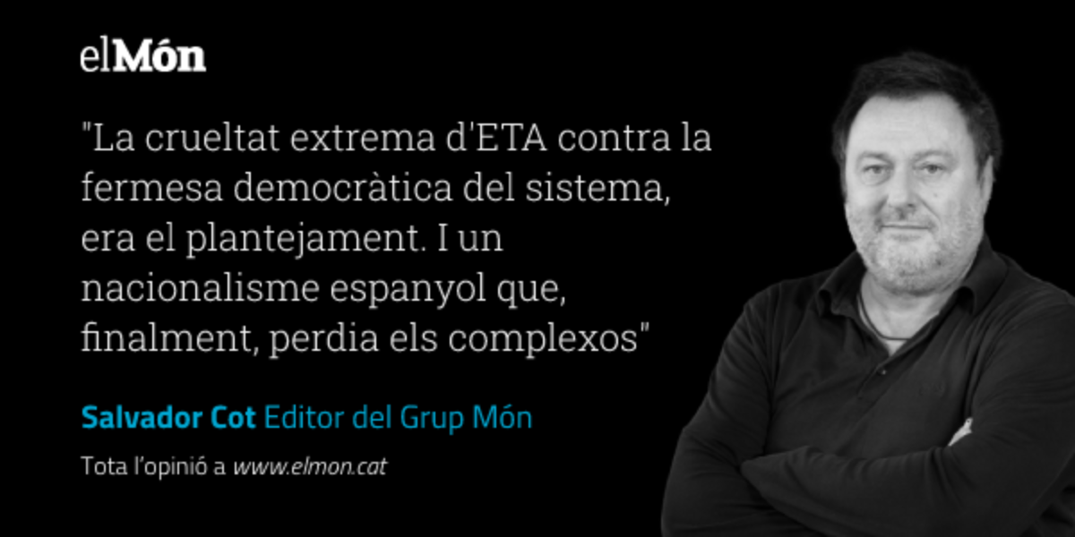 … a por ellos, con la paz y la palabra. Porque somos infinitamente más y, sobre todo, porque somos infinitamente mejores, a por ellos, porque ¡basta ya!“. Aquest doble “a por ellos” el va llançar la periodista Victoria Prego davant de la massa que omplia la Puerta del Sol, el 14 de juliol de 1997, en protesta per l’execució, anunciada i realitzada, de Miguel Ángel Blanco a mans d’ETA. L’empatia social davant d’un crim amb compte enrere va fer que, des del punt de vista de l’Estat, l’assassinat de Blanco es convertís en una formidable font de legitimació del règim polític -que, al capdavall, provenia d’una dictadura-, fins el punt que les mobilitzacions van ser de dimensions extraordinàries no només a Madrid, sinó també a la resta de l’Estat, Euskadi i Catalunya incloses. La crueltat extrema d’ETA contra la fermesa democràtica del sistema, era el plantejament. I un nacionalisme espanyol que, finalment, perdia els complexos i aspirava a reprendre la lluita per l’assimilació de bascos i catalans que havia quedat a mig fer al final de la dictadura.