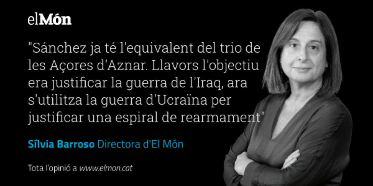 Pedro Sánchez ja té l’equivalent del trio de les Açores de José María Aznar. En aquell moment l’objectiu era justificar la guerra de l’Iraq, ara s’utilitza la guerra d’Ucraïna per justificar una espiral de rearmament. Només hi ha una diferència entre Aznar i Sánchez: l’aleshores líder del PP no es presentava com a “progressista”. Bé, i una altra: no tenia Podemos com a soci de govern.