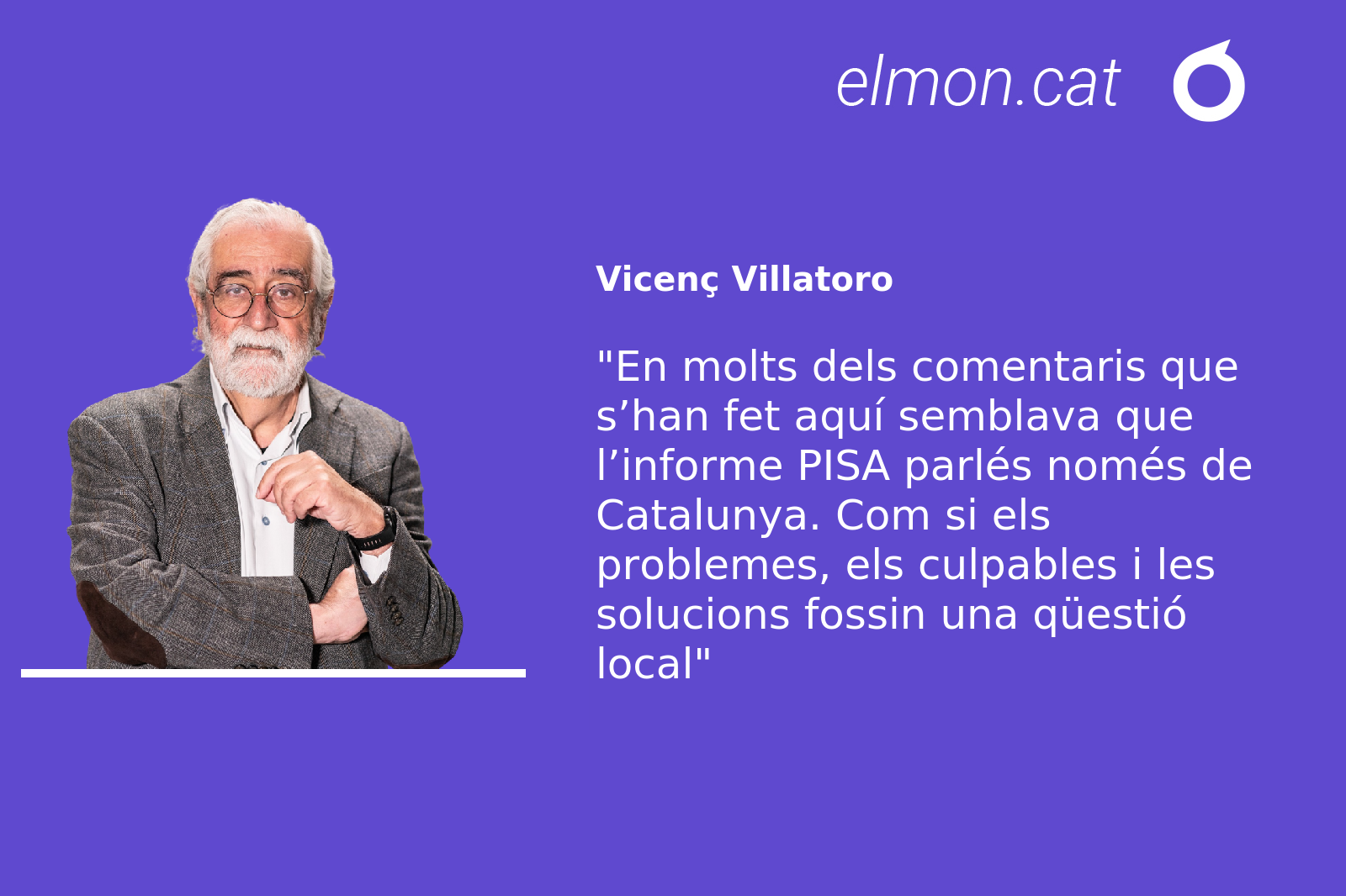 L’aparició de l’informe PISA sobre l’eficiència del sistema educatiu ha generat entre nosaltres una veritable allau d’opinions, articles, declaracions, manifestos, comentaris, desmentiments i desqualificacions. Em falta competència en la matèria per afegir la meva a totes aquestes opinions, però sí que em permeto comentar els comentaris, perquè crec que ens donen en el seu conjunt pistes sobre una característica rellevant del nostre país, avui, i que podríem definir d’entrada com la seva tendència a l’aïllacionisme. Dels molts comentaris que he llegit, un lector en pot treure la impressió –falsa– que l’informe PISA només parla de Catalunya. Que només ressalta els retrocessos i les mancances del sistema escolar a Catalunya. Quan el titular arreu de l’informe PISA és que totes les societats del nostre entorn, incloses algunes de les que havien considerat històricament un referent positiu, han experimentat un retrocés molt fort que posa en qüestió el seu model. Constatar això d’entrada no és apuntar-se al “mal de molt, consol de pocs”. El mal de molts no és consol de ningú. Però veure on es produeix i on no es produeix el retrocés ajuda sens dubte al diagnòstic del problema: pots mirar quins defectes comparteixes amb tots els altres que retrocedeixen i quines virtuts no comparteixes amb aquells que avancen. Certament, Catalunya baixa més que ningú. Llavors la comparació ens pot ajudar a detectar en quins defectes excel·lim més que ningú altre o quins tenim d’específics que ens fan situar a la cua de la cua.