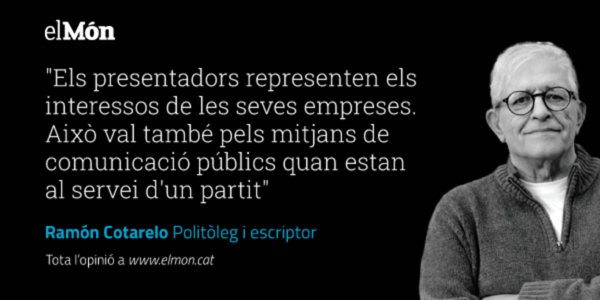 En sentit pràctic, representa els interessos d’una empresa. Aquesta circumstància sembla inevitable en una societat de lliure mercat, on hi ha empreses que negocien amb la comunicació. No és cap judici moral; és un fet. I la finalitat de tota empresa és el benefici. Els presentadors representen els interessos de les seves empreses. Això val també pels mitjans de comunicació públics quan estan al servei d’un partit. Perquè un partit és una associació privada, atès que el seu benefici, abans de fer-se efectiu a la butxaca, es calcula en vots.
