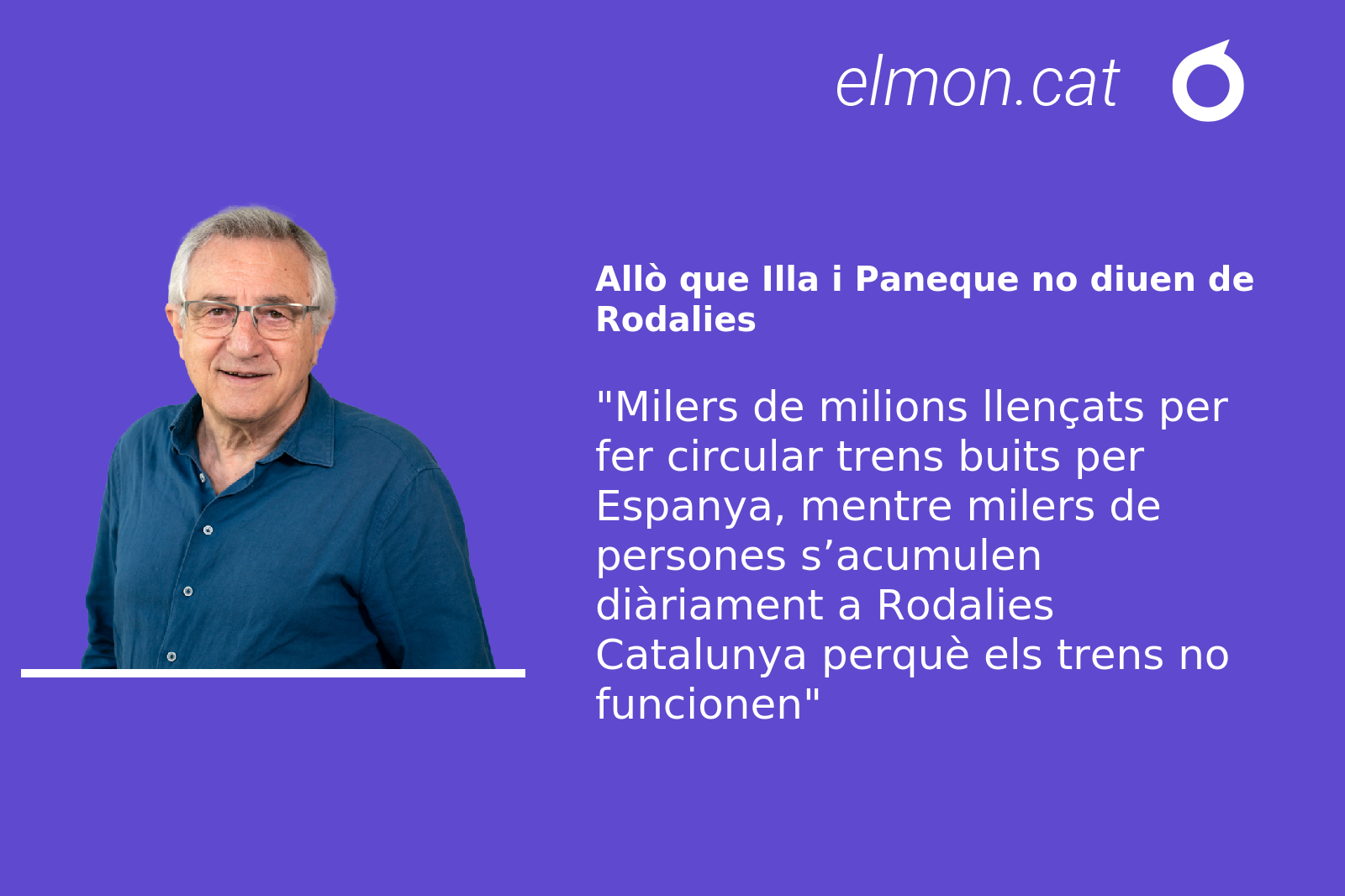El caos de Rodalies és de tal magnitud i deixa tan a la vista el menyspreu de l’Estat als catalans, pel sol fet de ser catalans, que Salvador Illa i la consellera Sílvia Paneque s’han vist obligats a dir-hi alguna cosa. Però què han dit? Doncs s’han espolsat les puces, ha donat les culpes a tercers, han dit que que Madrid –Madrid són ells– hi està posant més diners que mai i que els catalans som massa impacients per exigir-los fets i no paraules. Amb tot el desvergonyiment, el ministre de Transports, Óscar Puente, ha arribat a dir: “No podem invertir més perquè prou molèsties estem causant” (!). Es burlen de nosaltres. També se’n burla el president de Renfe, Raül Blanco, que diu: “La inversió en trens i estacions entre Barcelona i Madrid és pràcticament la mateixa”. La mentida com a argument.