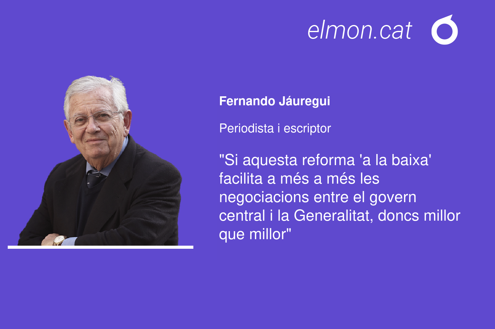 Penso que si la reforma coincideix amb una part de les peticions d’un sector de l’independentisme català, si aquesta reforma ‘a la baixa’ facilita a més a més les negociacions entre el govern central i la Generalitat, doncs millor que millor, al meu entendre. Oposar-se a una millora dels textos legals perquè això convé a, posem com a exemple, Esquerra Republicana de Catalunya, aprofundeix aquest to vindicatiu i rupturista tan propi d’aquells falcons que habiten en algunes teulades madrilenyes i dificulten qualsevol acord, sigui en el tema que fos; consideri, si no, les resistències d’un sector de la dreta que es tanqui el pacte sobre la renovació del govern dels jutges.