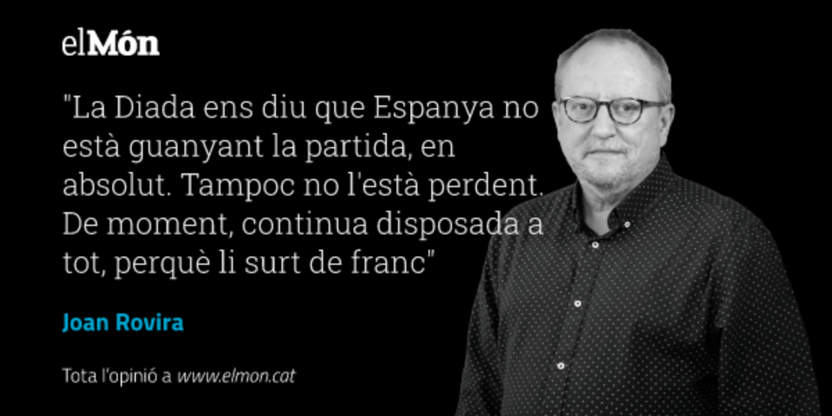 En qualsevol cas, la Diada ens diu, una vegada més, que Espanya no està guanyant la partida, en absolut. Tampoc no l’està perdent. De moment, continua disposada a tot, perquè li surt de franc, llevat d’algunes pèrdues sensibles en reputació internacional, que, acostumada com està a l’autarquia, a més d’intoxicada de nacionalisme imperial, potser tampoc no importen massa en el món cap al qual anem…