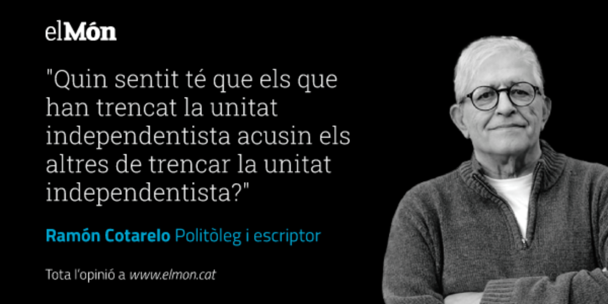 Res no es pot dividir si està dividit. Es pot dividir més, però dividit estava de principi. La qüestió és entre què i què. Òbviament, no hi ha divisió entre els dos partits dits independentistes. JxC va a remolc d’ERC, com diu Joan Tardà, però va feliç. No és aquesta unitat la que està dividida, sinó la que hauria d’haver-hi entre els partits dits independentistes i la gent. Aquesta és la unitat de l’independentisme trencada en dos pols confrontats i mútuament hostils, els partits i la gent.
