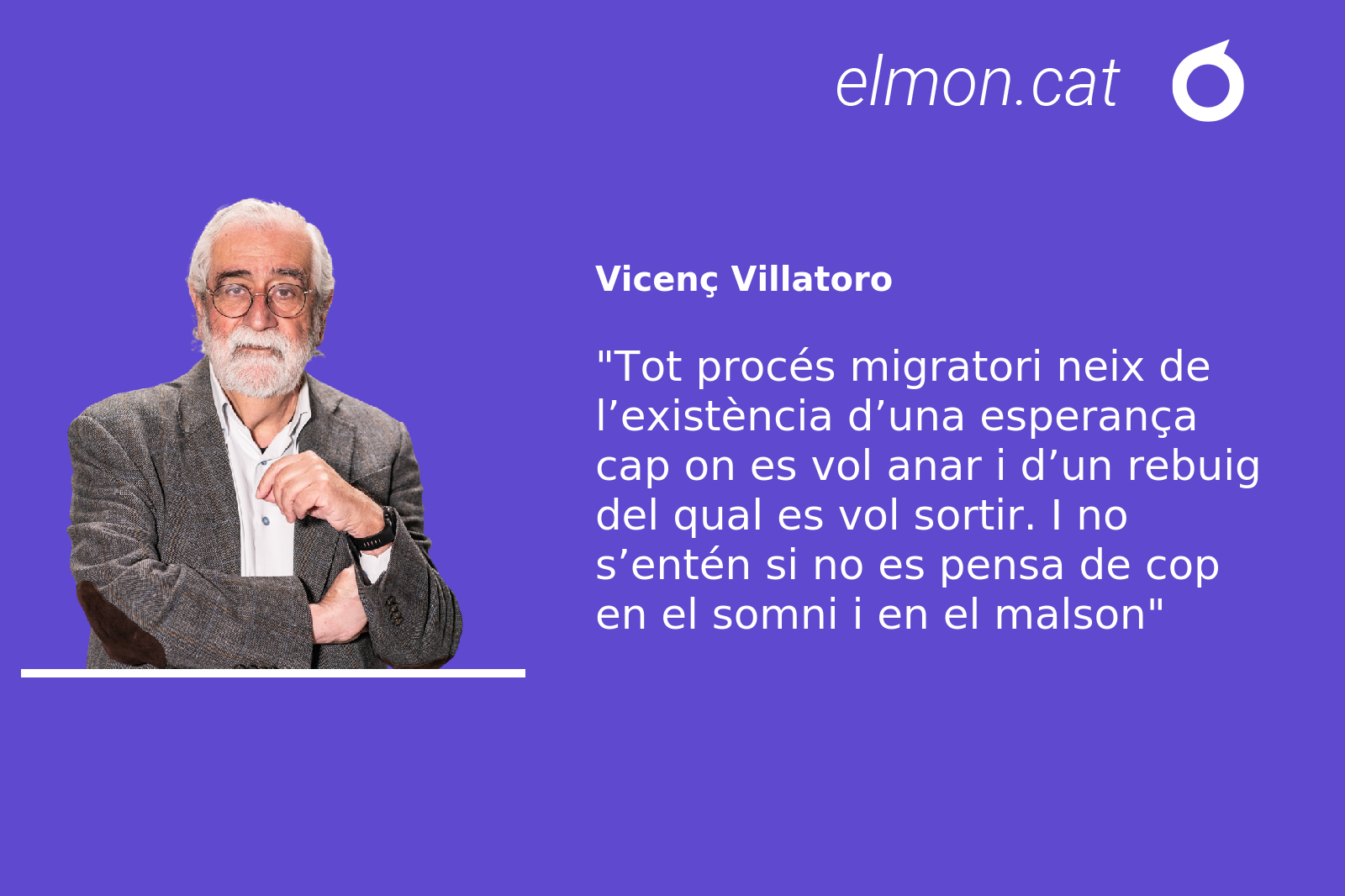 Com l’electricitat, la migració exigeix l’existència de dos pols, un de positiu i un de negatiu, en aquest cas el somni d’un lloc on anar i alguna forma d’exili d’un lloc del qual anar-se’n, que rebutges o que et rebutja. Qualsevol història individual de migració, vista des de la perspectiva de la persona, necessita l’existència d’una certa esperança en una vida millor en el lloc, sovint desconegut, on vols anar i d’una necessita més o menys peremptòria de deixar enrere (per tant, d’alguna forma d’exili) el lloc on has viscut. Si no hi ha aquests dos pols no hi ha electricitat. No cal que siguin dos pols absoluts: un somni esfèric i perfecte de felicitat en el lloc de destí i un rebuig urgent i insalvable, esfèric, del lloc de sortida. No n’hi ha prou que els dos pols existeixin i que el de l’esperança sigui més fort, encara que sigui només lleugerament més fort, que el de l’expulsió. Amb una característica essencial: l’esperança en el futur sempre és hipotètica, desconeguda, suposada. En canvi, l’impuls de marxar d’allà on ets sempre neix d’una experiència no gens hipotètica, sinó real, viscuda, tangible. Saps les raons per les quals vols marxar d’un lloc (o has de marxar d’un lloc). Les virtuts del lloc on vols anar només les suposes, aplicades al teu cas.