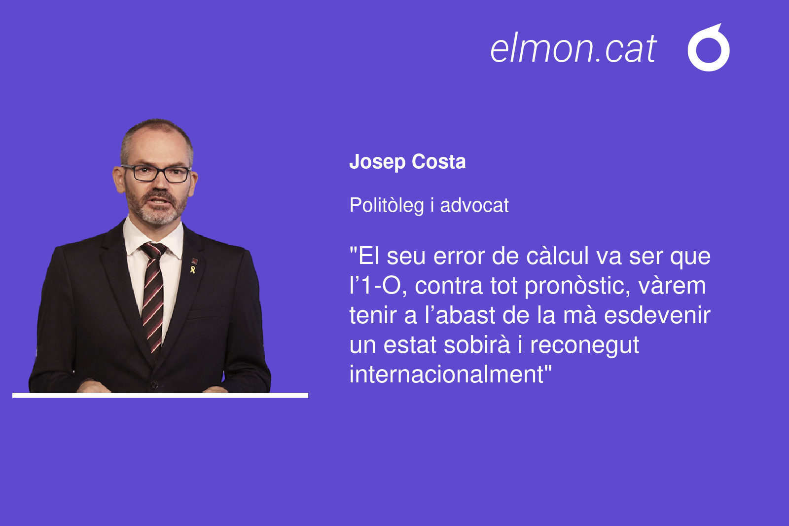 Per a Junqueras la qüestió no va anar mai d’independència, sinó d’hegemonia autonòmica. I per aconseguir-la (ERC va estar-ne prop) era més important la lluita contra Convergència que contra Espanya. El seu error de càlcul va ser que l’1-O, contra tot pronòstic, vàrem tenir a l’abast de la mà esdevenir un estat sobirà i reconegut internacionalment. Per això tota l’estratègia posterior es va centrar a aconseguir que la majoria social assumís la derrota, tornàs a casa i giràs full.
