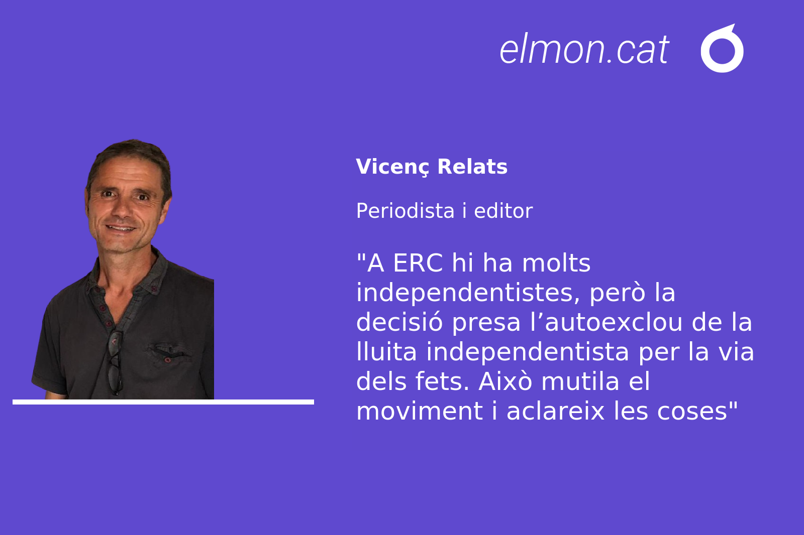 S’imposa el clàssic “fets i no paraules”. A ERC hi ha molts independentistes, però la decisió presa l’autoexclou de la lluita independentista per la via dels fets. Això mutila el moviment i també hi aclareix les coses, perquè qualsevol empresa col·lectiva requereix saber amb qui compta i amb qui no. Amb tot, que uns companys de viatge decideixin posar fi a la dinàmica popular teixida en un llarg període il·lusionant no vol pas dir que mori un procés d’alliberament nacional que, fet i fet, es va iniciar amb la mateixa desfeta del 1714.