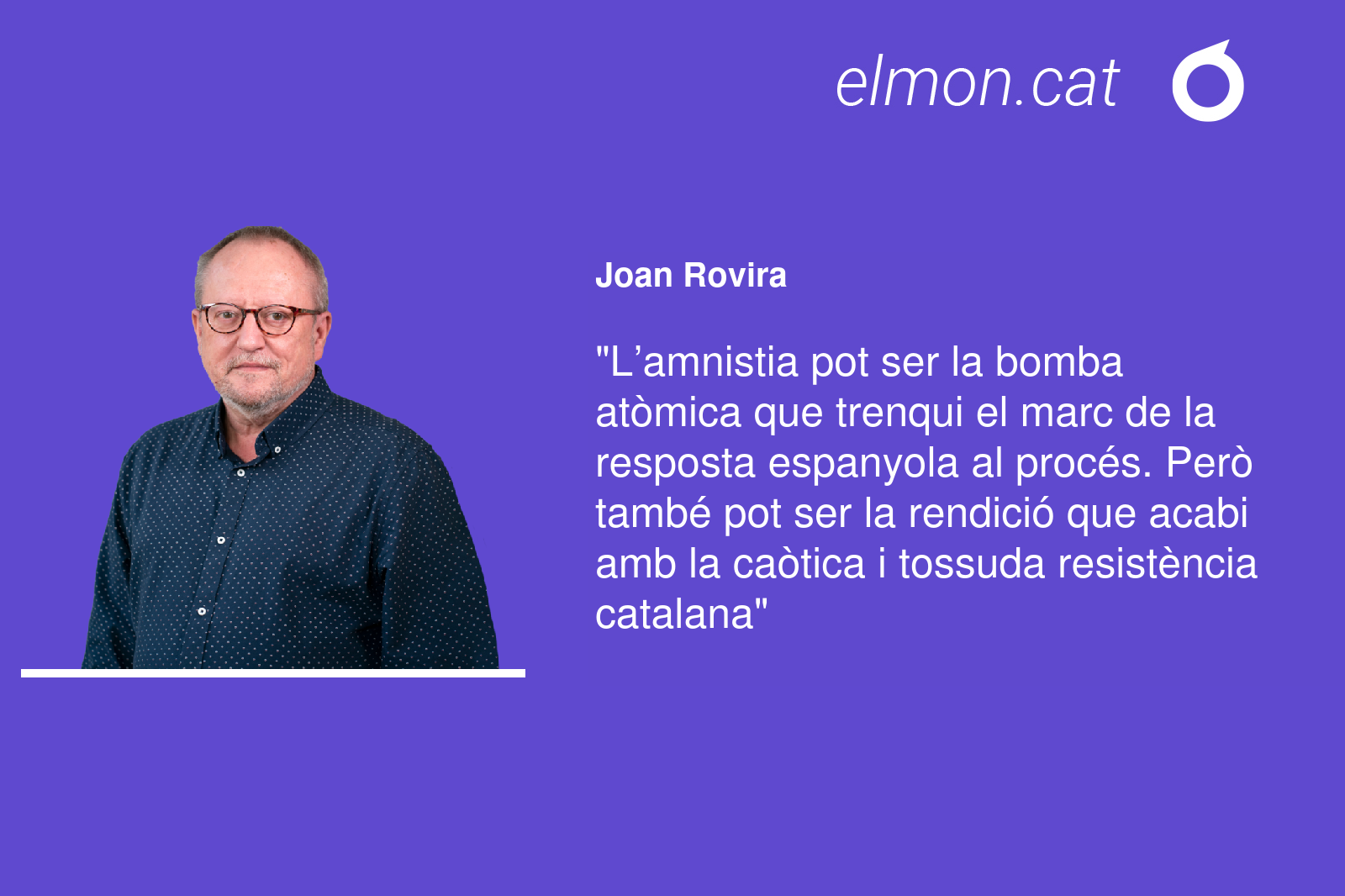 L’amnistia pot ser la bomba atòmica que trenqui el marc de la resposta espanyola al procés i obri nous camins. Però també pot ser la rendició que acabi amb la caòtica i tossuda resistència catalana. Les dues coses són perfectament possibles, partint del fet que això no pot anar de demanar perdó de genolls, sinó d’arribar a un pacte i pagar un cert preu a canvi de rescatar presoners. La ratlla és molt prima i els riscos són alts, però aquí hi ha una oportunitat per a la política d’altura i per obrir joc.