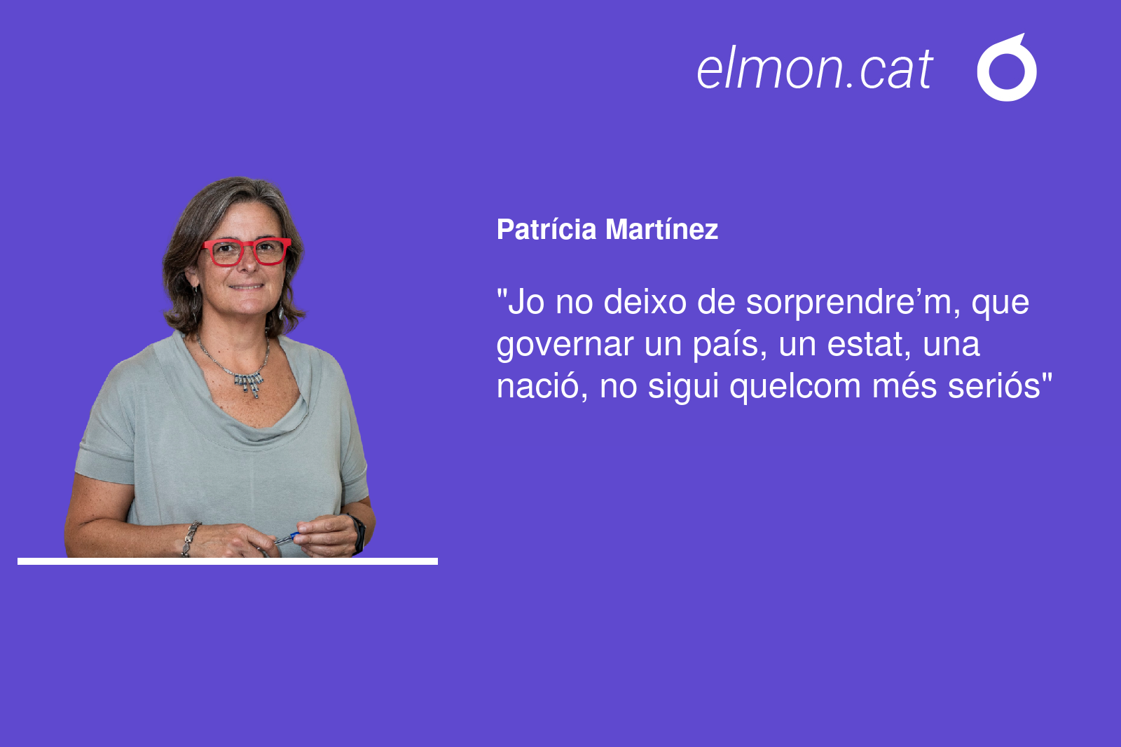 I ja ho sé, que només he descrit obvietats, i que “ja sabem què tenim, governant-nos el món”… però jo no deixo de sorprendre’m, que governar un país, un estat, una nació, no sigui quelcom més seriós. Perquè si fem la comparació, així, de moment, per exemple, amb tirar endavant una casa, una família o una feina… ostres, que costa moltíssim, que tot és molt de veritat, molt de fons, molt de sostenir-ho amb molt d’esforç!, i, en canvi, sembla que governar sigui un joc: que en faci part l’estratègia, el veure qui parla per convèncer més, el veure qui pot acabar sent més desafiant.