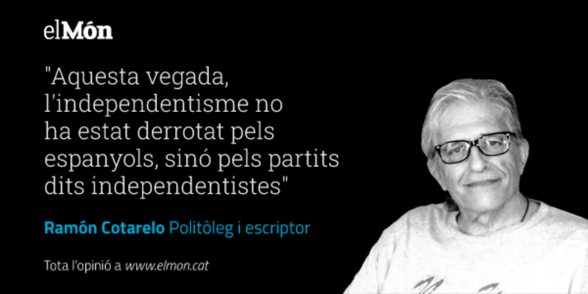 Aquesta vegada, l’independentisme no ha estat derrotat pels espanyols, sinó pels partits dits independentistes. Una victòria vicària de la partitocràcia catalana. Tanmateix, la gent encara és independentista i, aleshores, decebuda i frustrada amb els partits, més que mai. L’independentisme va esclatar contra tot pronòstic oficial l’1-0, un llamp, un foc d’esperança que ha encisat una generació i que tots els bombers dels partits no han aconseguit ofegar.
