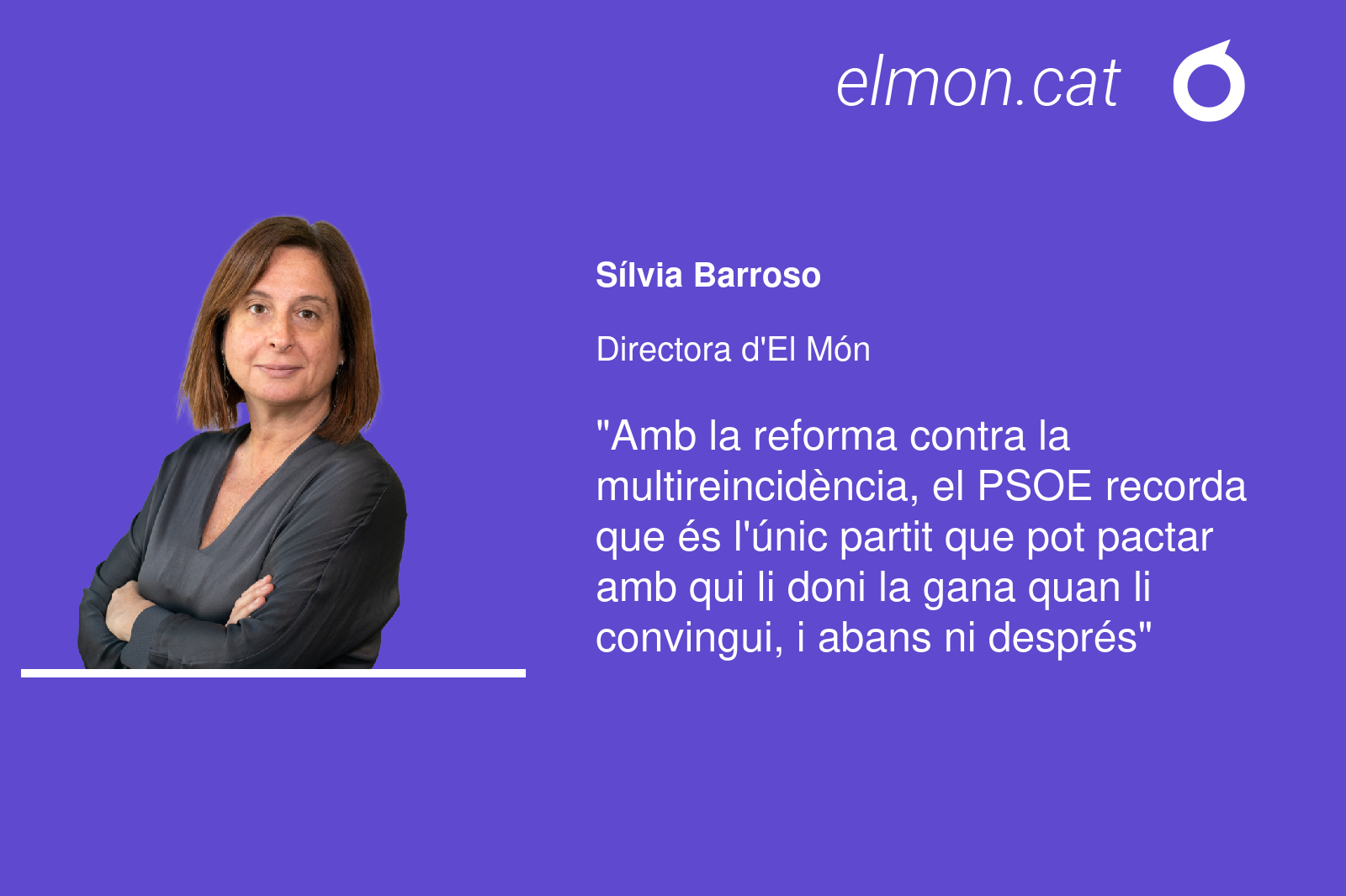 En definitiva, tots els indicadors parlen de l’enorme complexitat del problema i evidencien que no hi ha cap fórmula màgica. Per avaluar la reforma contra la multireincidència aprovada caldrà temps i mitjans per aplicar-la. De moment, els partits que hi han contribuït en fan lectures victorioses a mida com si fos una nit electoral, els alcaldes esperen rendibilitzar-la políticament –s’acosten les municipals– i el PSOE aprofita per recordar que és l’únic partit que pot pactar –explícitament o no– amb qui li doni la gana quan li convingui, ni abans ni després.