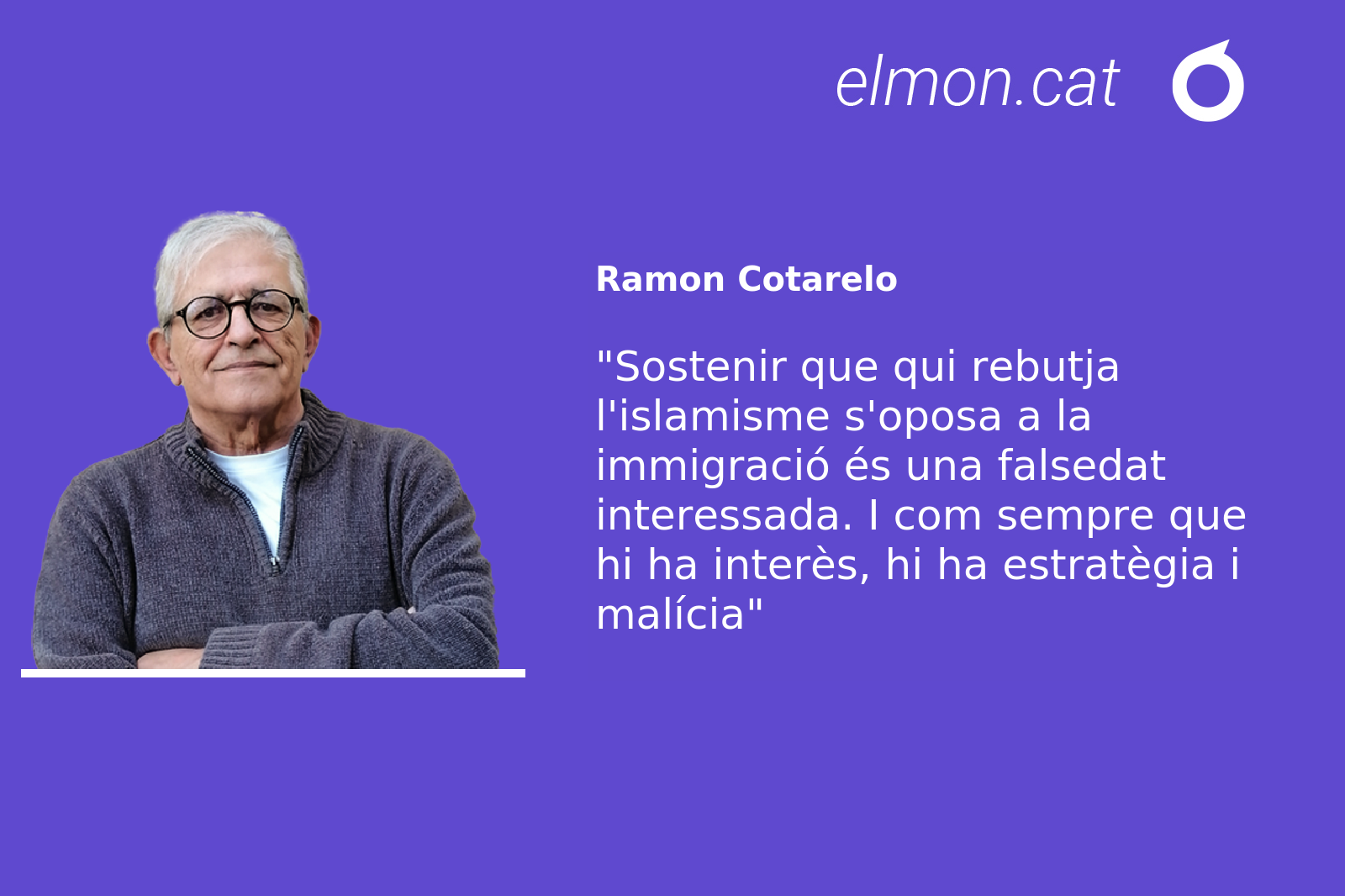 Així que immigració i islamisme són dues coses diferents i, quan es barregen, convé distingir-les per mor de la claredat. Sostenir que qui rebutja l’islamisme s’oposa a la immigració és una falsedat interessada. I com sempre que hi ha interès, hi ha estratègia i malícia.