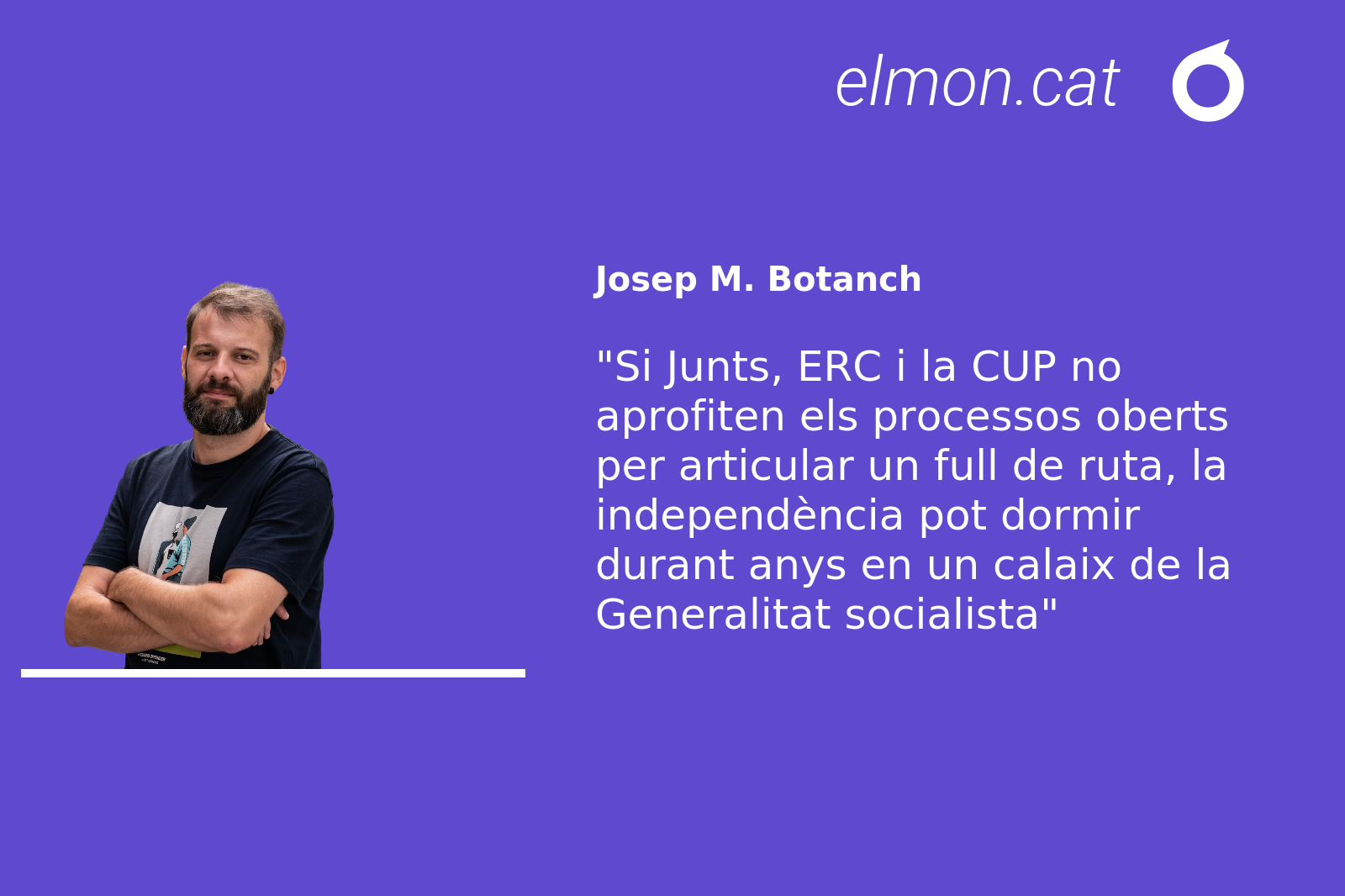 Aquests tres procés engegats potser són l’última bala que té l’independentisme per articular un nou full de ruta. No cal que aquest sigui conjunt, però s’han de refer confiances i establir complicitats entre uns i altres. Aquest no és un camí fàcil, i aquí és on les entitats independentistes han de fer la seva feina. Més enllà de posicionaments molt propers a uns partits o uns altres, les entitats s’han de posar al servei d’un objectiu i actuar com l’engranatge que ha de facilitar que totes les peces puguin situar-se sobre el terreny de joc sense pegar-se cops de colze contínuament. I, òbviament, no s’ha de deixar de banda l’enfrontament amb l’Estat, l'”encara som aquí”. Si no és així, la independència pot dormir durant anys en un calaix de la Generalitat socialista.