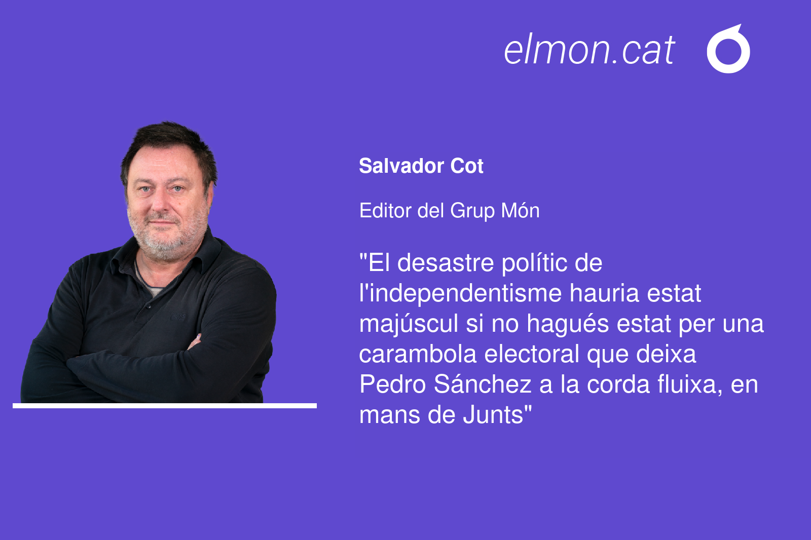 Així les coses, el desastre polític de l’independentisme hauria estat majúscul si no hagués estat per una carambola electoral que deixa la presidència de Pedro Sánchez a la corda fluixa, en mans d’ERC i, sobretot, de Junts. Això vol dir que no és moment de precipitacions ni frivolitats, tampoc de grandiloqüències de cara a la galeria ni, menys encara, de mesquineses de partit. ERC i Junts, Junqueras i Puigdemont -qui ho havia de dir- estan davant d’una cruïlla històrica. Com aquells penals en temps de descompte, és l’última oportunitat -imprevista, però claríssima- per redreçar el resultat d’un moviment polític que mereix recuperar la iniciativa.