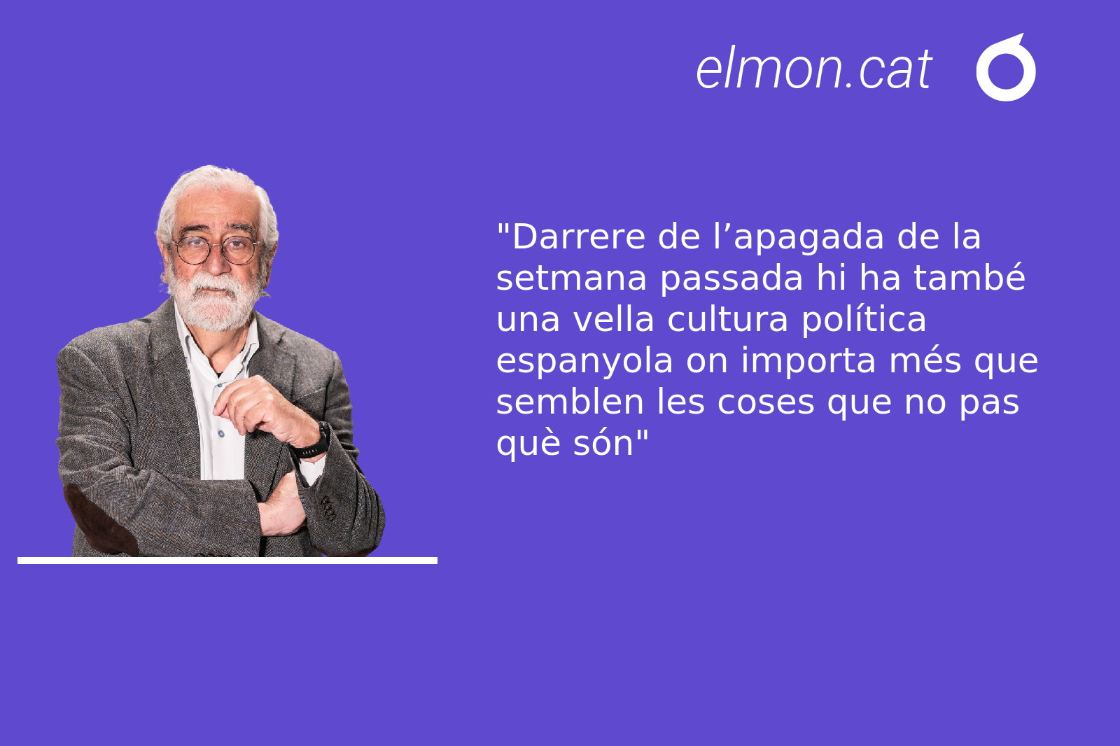 Aquests retrets remeten a la pervivència d’una cultura política que va més enllà de l’apagada i més enllà del govern espanyol actual, tot i que aquest govern hi participa amb entusiasme: una cultura política en el que és més important el que semblen les coses que no pas el que són. Espanya vol dir que té un model energètic modern, eficient i pensat al servei dels ciutadans. Vol que ho sembli, fa tot el que pot perquè ho sembli, però no fa tot el que hauria de fer perquè ho sigui. Vol que sembli que es preocupa perquè els ciutadans tinguin l’energia més barata, però el que passa és que es queden de cop sense energia. Els esforços més grans es dediquen a l’aparença de les coses. No pas al que són de veritat, encara que no es noti. Importa més la façana que l’interior. I per això, diu l’article, tot i que Pedro Sánchez sap quin va ser el problema, que les coses no eren el que semblava, no ho reconeixerà mai. Perquè han de continuar semblant-ho, ho siguin o no ho siguin. L’aparença és irrenunciable. La realitat, discutible.