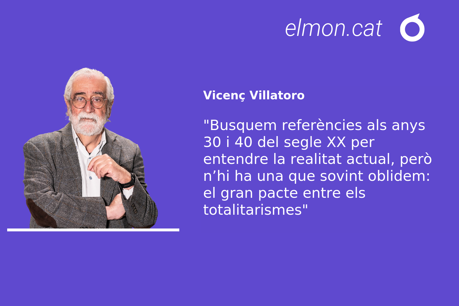 Si fem servir exemples del passat per intentar comprendre el present, aquesta col·laboració entre totalitarismes contra els del mig –com una fase prèvia a un hipotètic enfrontament posterior entre ells- no em sembla un record negligible. Certament, els totalitarismes d’avui són diferents dels del passat. Però n’hi ha. Amb formes, indumentàries i fonaments diferents dels de llavors. Per exemple, als totalitarismes per raó de classe o de nació s’hi han afegit amb una força extrema els totalitarismes de matriu religiosa. Però la temptació de confluït en la pràctica encara que sigui amb discursos antagònics, d’alimentar-se mútuament, de buidar, combatre i desacreditar l’espai del mig –pensant o no en una posterior confrontació entre ells- em sembla un precedent útil per entendre algunes de les coses que estan passant i que en setmanes com aquesta esdevenen d’una tràgica actualitat.