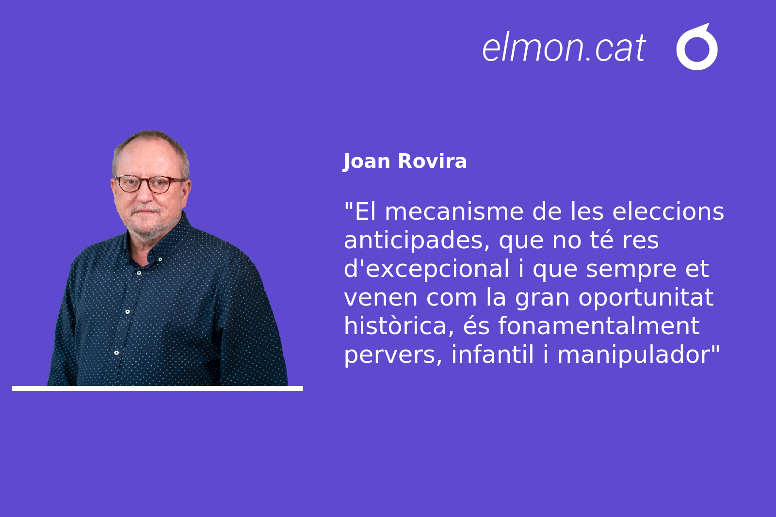 El mecanisme de les eleccions anticipades, que no té res d’excepcional i que sempre et venen com la més gran oportunitat històrica que han vist tots els temps, és fonamentalment pervers, infantil i manipulador. Una eina legal al servei de purs, crus i indigestos interessos de partit i problemes d’ego mal gestionats. Un abús, es miri per on es miri. I ara, qui vulgui deixar-se arrossegar a una cursa tramposa, sense preguntar-se per què correm i cap a on, té dos mesos al davant… I vinga, som-hi a discutir possibilitats, enquestes, maniobres i jugades mestres… Fins al pet bufat que tancarà tot el procés electoral i que no solucionarà res.