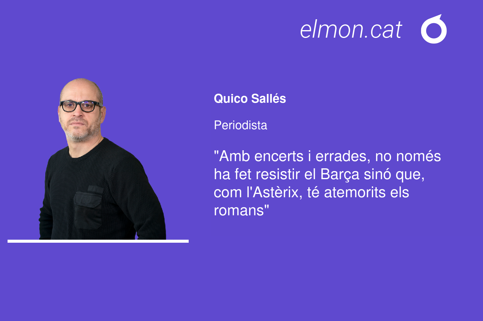 De fet, Laporta ha resistit amb la poció màgica d’una fórmula senzilla: jugar a l’ofensiva i no aixoplugar-se en la resistència dels esporuguits i que es protegeixen a recer del sistemes polítics, mediàtics i econòmics de l’administració, el BOE i el DOGC. Laporta, amb encerts i errades, no només ha fet resistir el Barça sinó que, com l’Astèrix, té atemorits els romans. Ja poden venir amb ous a vendre i amb tota la quantitat ingent de calers i de principis que s’han deixat en la contracampanya, perquè si els antilaportistes sabessin de futbol, recordarien una gran frase del líder suprem de la futbol modern, Johan Cruyff: “Mai no he vist una bossa plena diners que marqués un gol”. Laporta, per Tutatis!