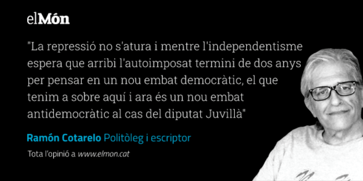 No, la repressió no s’atura i mentre l’independentisme espera que arribi l’autoimposat termini de dos anys per començar a pensar en un nou embat democràtic, el que tenim a sobre aquí i ara és un nou embat antidemocràtic al cas del diputat Juvillà. Un embat contra la sobirania del parlament. Un torpede a la línia de flotació de la independència perquè la representació popular és l’òrgan cridat a proclamar-la. I un embat amb un ominós precedent al cas del MHP Torra que va ser inhabilitat amb l’acord d’un parlament, el mateix que l’actual amb les posicions de domini invertides.