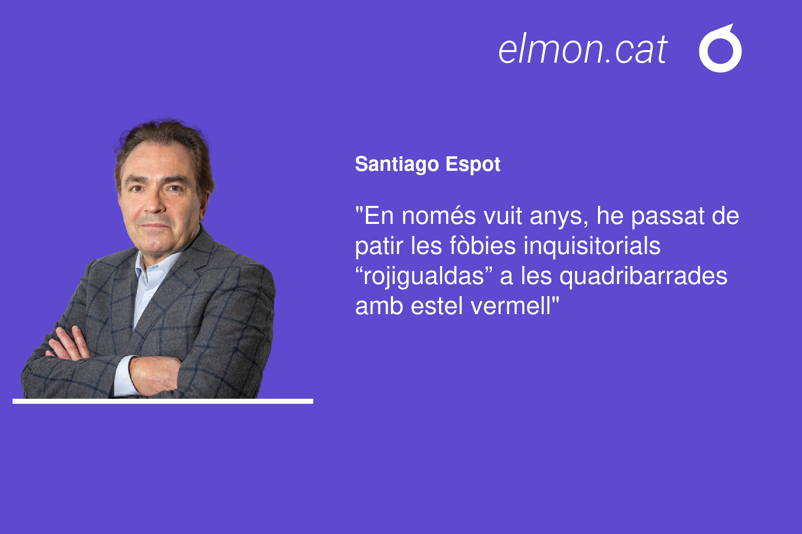 En acabar l’acte i sortir al carrer encara hi havia quatre furgonetes policials. Exactament, el mateix nombre que les que vaig comptar a la porta de l’Audiència Nacional el dia del meu judici. Vaig pensar que, en només vuit anys, he passat de patir les fòbies inquisitorials “rojigualdas” a les quadribarrades amb estel vermell. Dues cares de la mateixa moneda. El fart de riure de la Moncloa es podia sentir a Vilafranca.