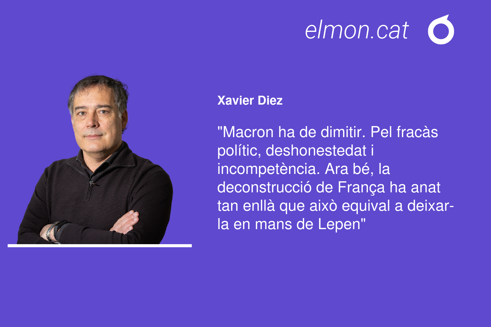 Macron ha de dimitir. Pel seu fracàs polític, per ser responsable de la paràlisi política, per la seva deshonestedat personal, per la seva evident incompetència. Ara bé, la deconstrucció de França ha anat tan enllà que això equival a deixar la República en mans de la nissaga Lepen (o els seus vicaris, atès que el poder judicial ha propiciat una d’aquelles inhabilitacions forçades pensades per treure’s de sobre rivals polítics). Certament, l’expansió de la ultradreta a Europa (ha caigut Hongria, Txèquia, Eslovàquia, Polònia, Itàlia i, a mitges, Holanda i Àustria) sembla un efecte dòmino que probablement arribarà a París, i tot apunta que a Londres, també. És gairebé inevitable, tenint en compte el que ha succeït també a Washington. I tot per no haver actuat a temps sobre l’escissió de les classes privilegiades globalistes, és a dir, per no haver aplicat un impost a les grans fortunes com la taxa Zucman, que és el gran debat al país veí, i que consisteix a imposar una mena de fiscalitat als més rics que faci inútil tota la tasca d’enginyeria social. Perquè, fonamentalment, aquest és el gran problema europeu: un globalisme consistent a l’acaparament dels més rics de tot el creixement del darrer mig segle.