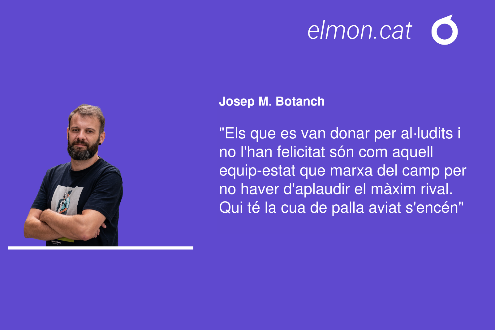 Potser aquí es troba el quid de la qüestió. La gent va aplaudir un discurs que anava de cara, però era elegant fent servir totes les paraules i definicions que un pot trobar al diccionari. Contundent, també, però elegant i esportiu evitant donar noms. “No es tracta d’anar a persones concretes, sinó a la tendència amb què es governa avui dia”, remarcava en l’entrevista. L’esportivitat que va tenir el poeta, no la van tenir tots els que s’han donat per al·ludits i li han negat la felicitació. Són com aquell equip-estat que prefereix marxar del camp per no haver de donar l’enhorabona al seu màxim rival. Qui té la cua de palla aviat s’encén.