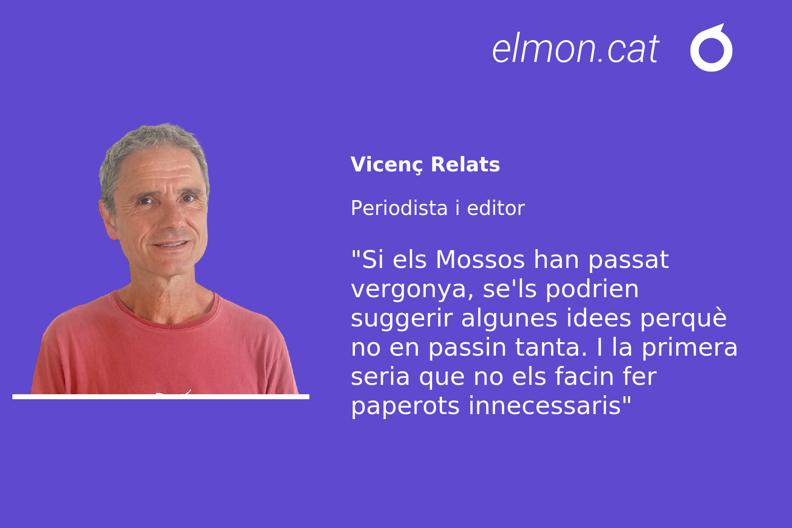 I, si és així, si els Mossos han passat vergonya, se’ls podrien suggerir algunes idees perquè no en passin tanta. I la primera seria que no els facin fer paperots innecessaris, que no els toquen. El ridícul monumental va ser muntar un operatiu espectacular -que certament va resultar inútil- com el que el conseller Joan Ignasi Elena va organitzar, no pas a la recerca de cap criminal perillós sinó per detenir un reconegut polític independentista que en una democràcia real hauria de poder estar exercint com a cap de l’oposició i que hauria d’haver pogut retornar lliurement al país en virtut d’una llei d’amnistia aprovada pel Congrés, que uns jutges prevaricadors s’entossudeixen a anul·lar, tot incomplint-la i invalidant-la.