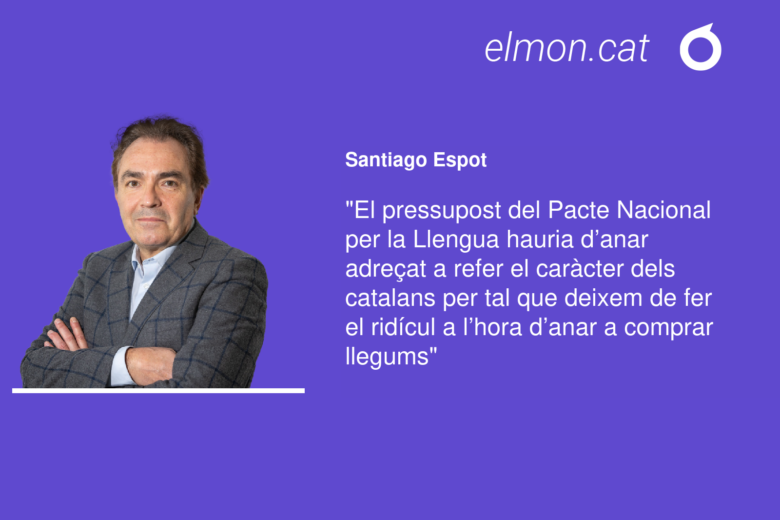 Els 225 milions d’euros del pressupost anual del Pacte Nacional per la Llengua haurien d’anar adreçats fonamentalment a refer el caràcter dels catalans per tal que deixem de fer el ridícul a l’hora d’anar a comprar llegums. Qui voldria integrar-se a un país que es ven la seva llengua per un plat de llenties?