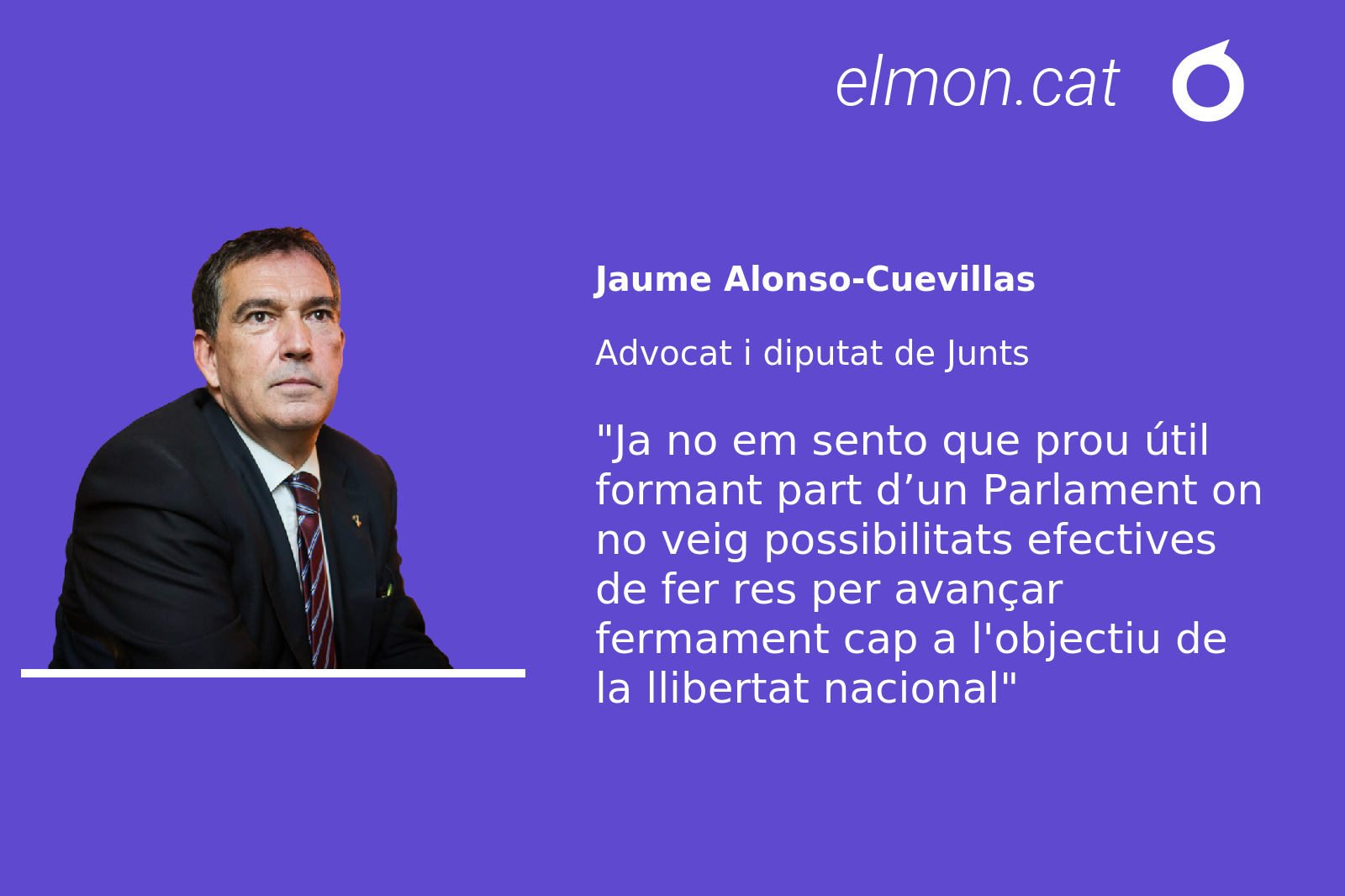 Des de fa, però, un temps, ja no em sento que prou útil formant part d’un Parlament on no veig possibilitats efectives de fer res que ens permeti avançar fermament cap a l’objectiu de la llibertat nacional, almenys durant aquesta legislatura ja completament morta.