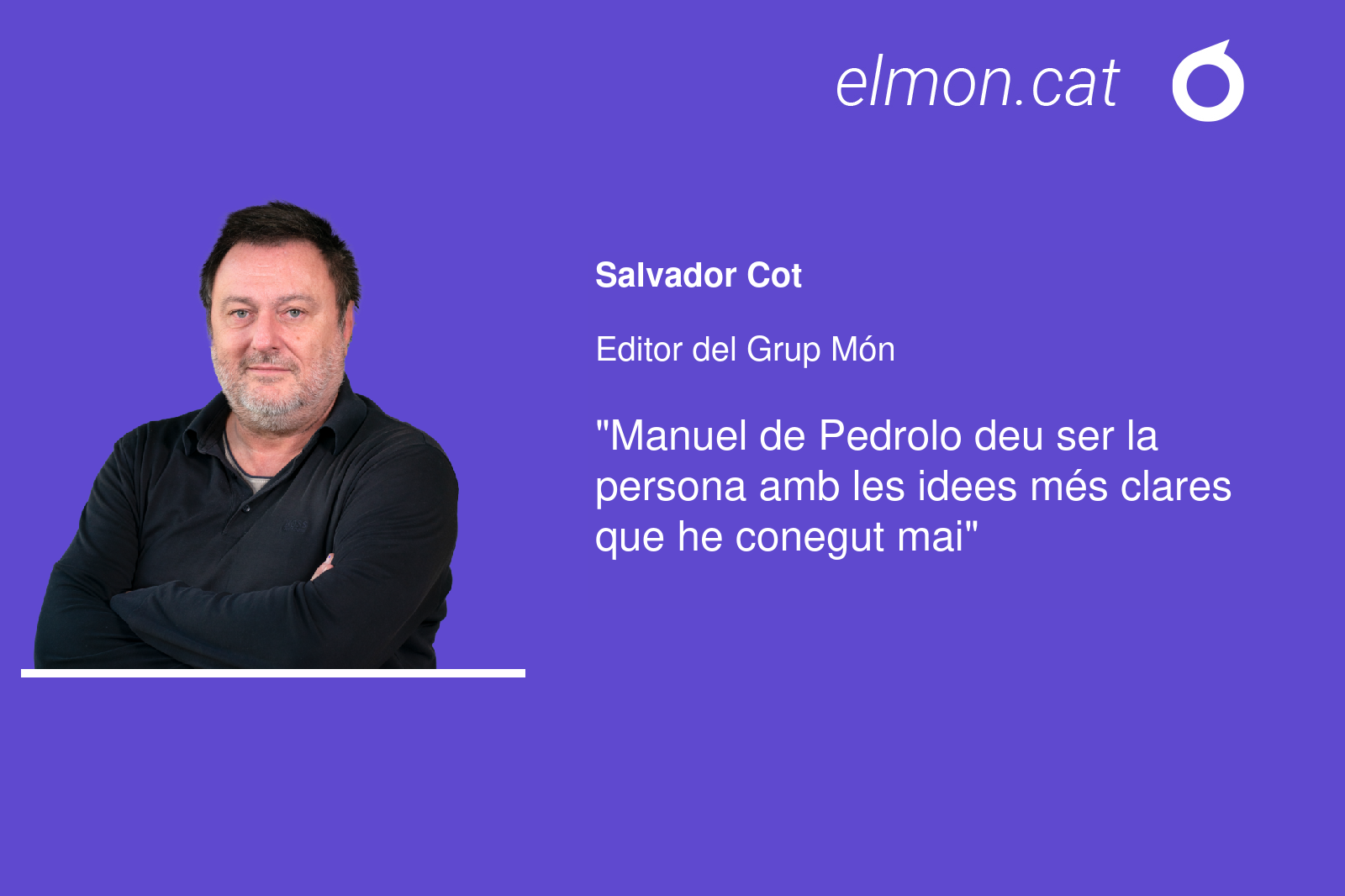 Manuel de Pedrolo deu ser la persona amb les idees més clares que he conegut mai. Pensava, creia, escrivia i deia que aquest país -Països, de fet- té dret a la independència i que qualsevol altra opció política o bé és directament colonial o bé és acomodatícia. No hi ha més. I pensava, creia, escrivia i deia que la supervivència de la nació està vinculada a la idea d’independència i, conseqüentment, a l’acció política, cultural i social per aconseguir-la. Era coherent amb aquesta convicció i, conscientment, estava al marge del poder i de totes les temptacions que genera la proximitat amb els que manen.