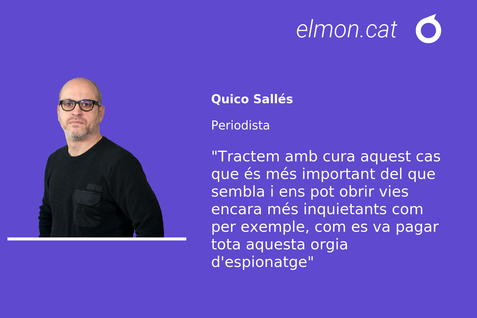 D’aquí la importància que l’abús de poder que va suposar espiar independentistes electes, periodistes i advocats, la porti als jutjats. És democràticament imprescindible. I un punt fort a favor de la demanda per vulneració de drets presentada pel president Quim Torra i l’exvicepresident del Parlament, Josep Costa, davant el Tribunal Europeu de Drets Humans. Els infiltrats en moviments sense cap mena de risc són un escàndol, però haver espiat massivament en els telèfons de la gent, encara ho són més. No oblidin que ara el mòbil és part fonamental de la nostra vida i un armari de dades i secrets més profund que casa nostra. Tractem amb cura aquest cas que és més important del que sembla i ens pot obrir vies encara més inquietants com per exemple, com es va pagar tota aquesta orgia d’espionatge.