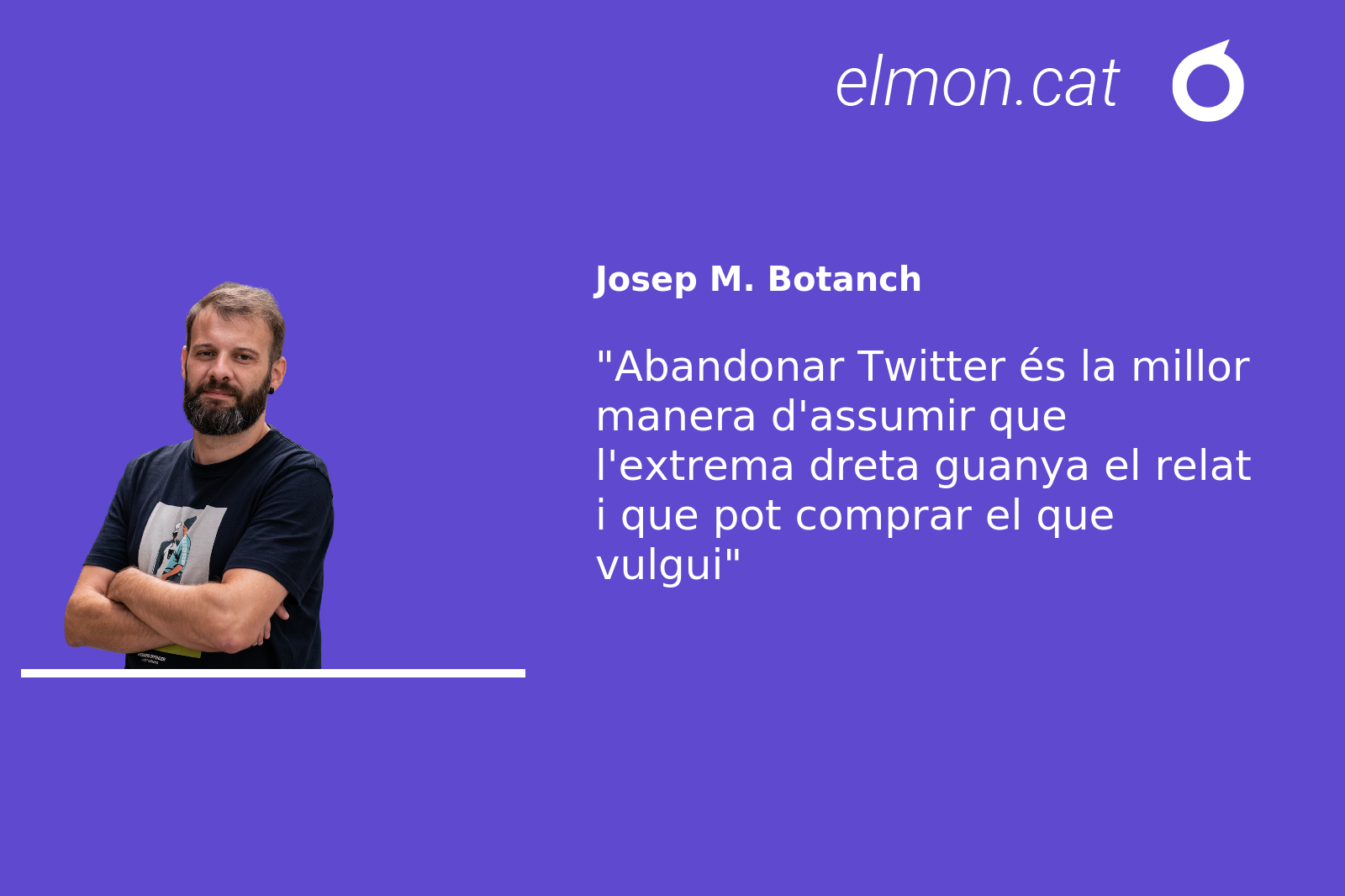 És respectable decidir abandonar Twitter, però no ho comparteixo. En aquests tems de desinformació és quan més falta fa defensar el valor del periodista i lluitar contra les notícies falses. Abandonar-la només serveix per abandonar la lluita contra la desinformació i regalar l’espai a l’extrema dreta. En definitiva, replegar-se és la millor manera d’assumir que Musk, Trump i companyia guanyen el relat i que poden comprar el que vulguin.